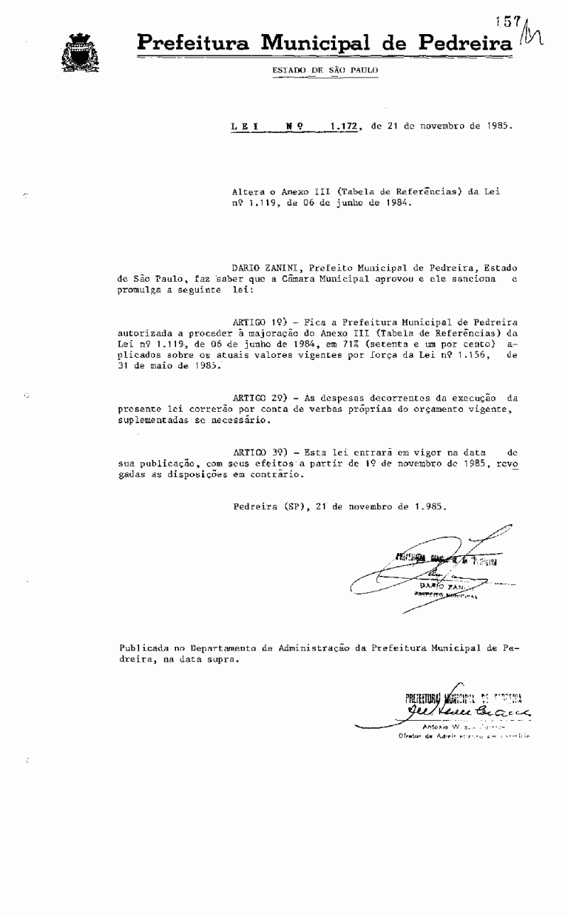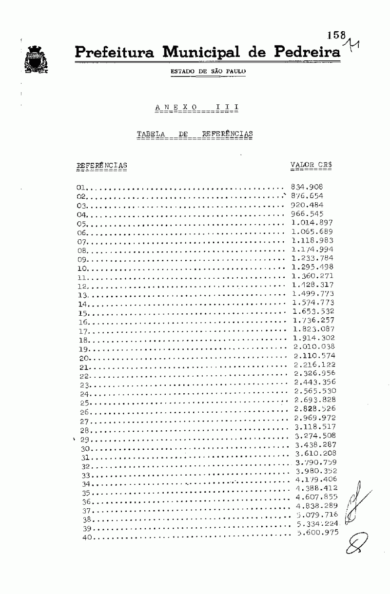 Ementa: Altera o anexo III (tabela de referências) da Lei nº 1119, de 06 de junho de 1984.