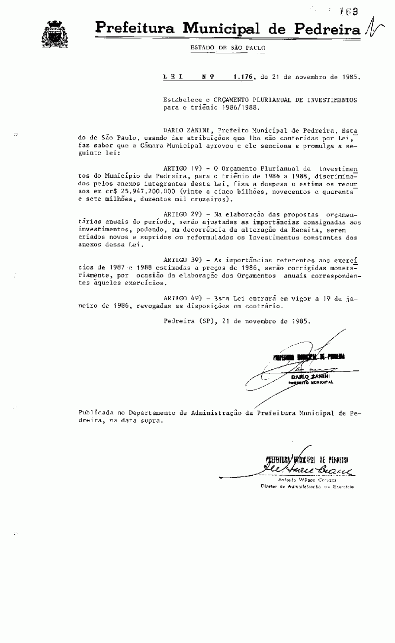 Ementa: Estabelece o Orçamento Plurianual de Investimentos para o triênio 1986/1988.
