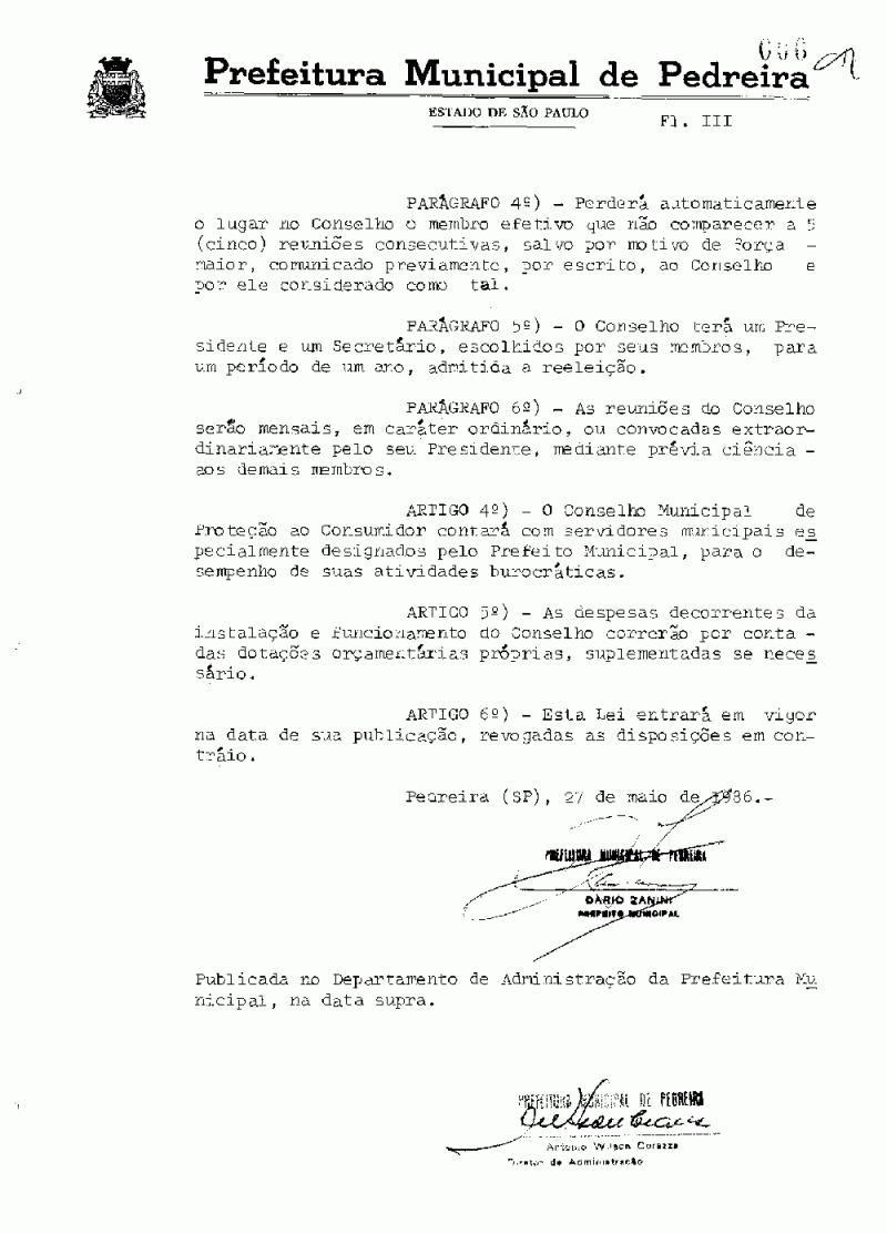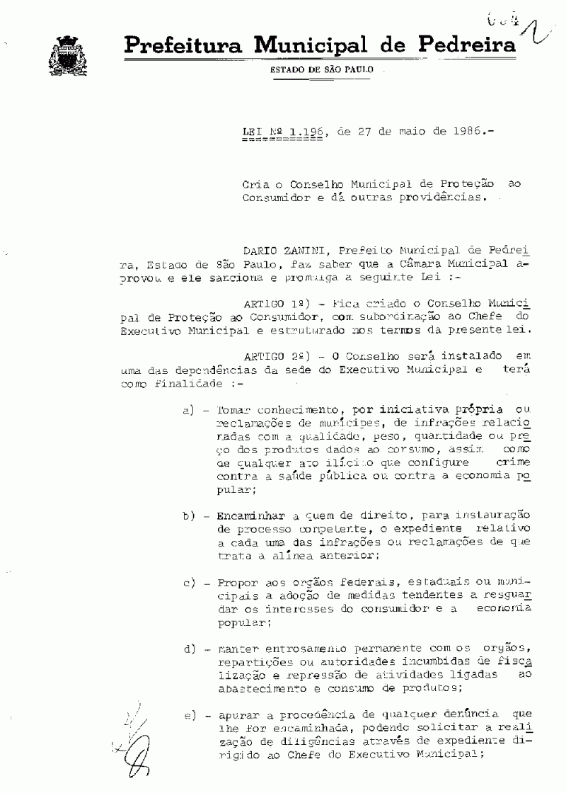 Lei Municipal - N° 1196 de 27/05/1986