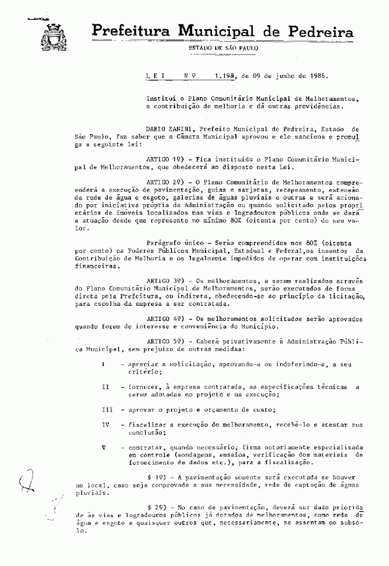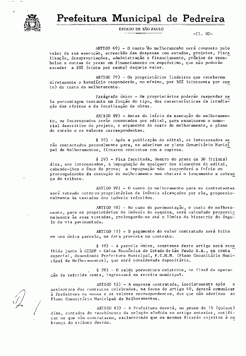 Ementa: Institui o Plano Comunitário Municipal de Melhoramentos, a contribuição de melhoria e dá outras providências.