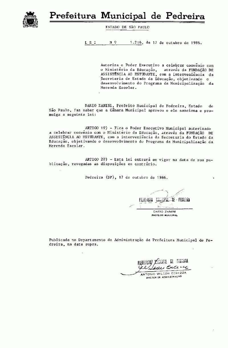 Ementa: Autoriza o Poder Executivo a celebrar convênio com o Ministério da Educação, através da Fundação de Assistência ao Estudante, com a interveniência da Secretaria de Estado da Educação, objetivando o desenvolvimento do Programa da Municipalização da Merenda Escolar.