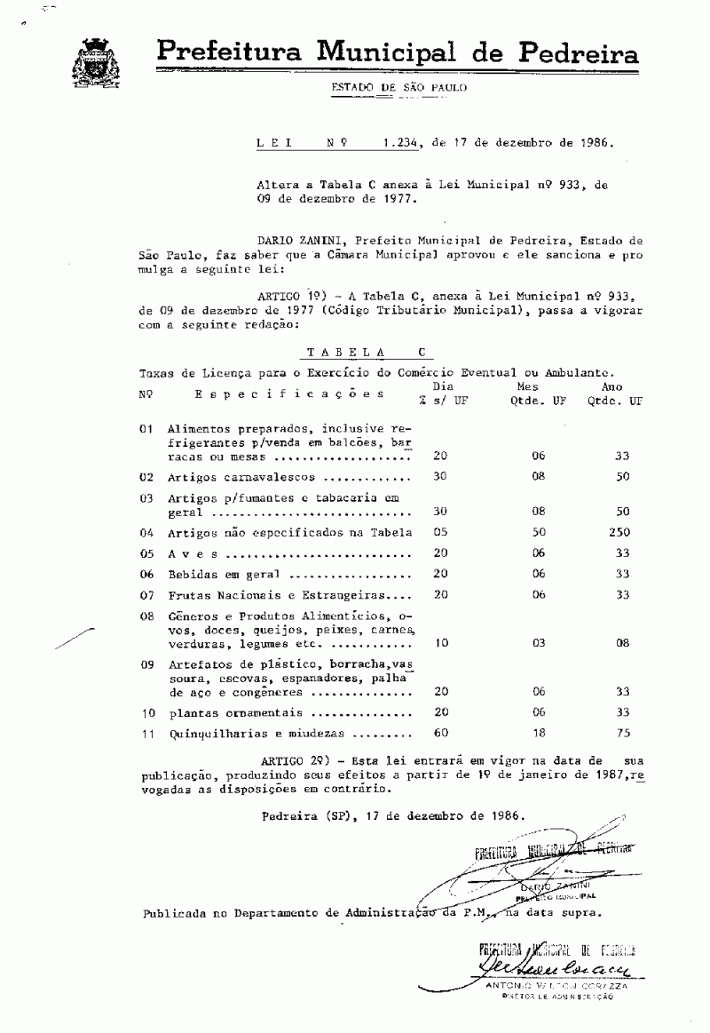 Lei Municipal - N° 1234 de 17/12/1986