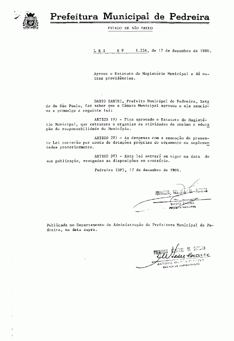 Lei Municipal - N° 1236 de 17/12/1986