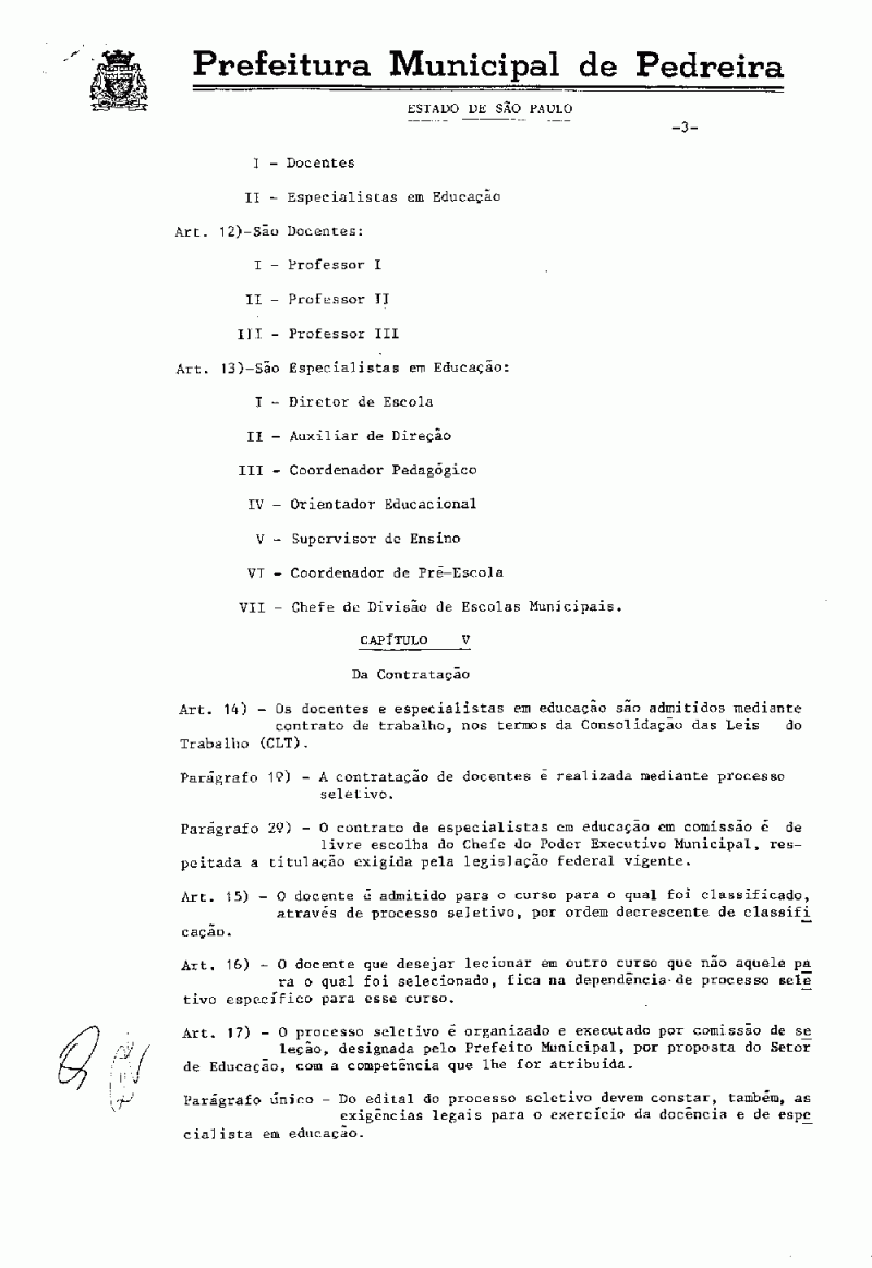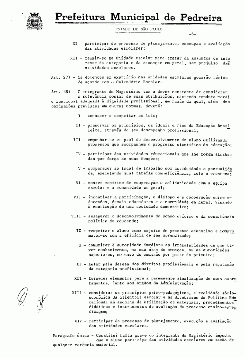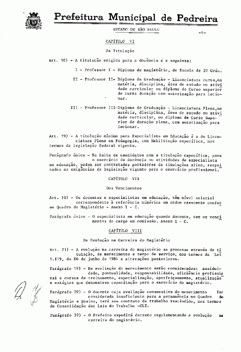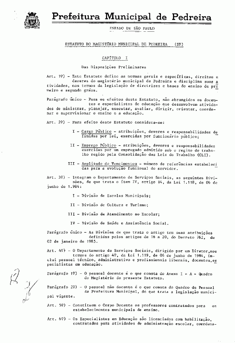 Ementa: Aprova o Estatuto do Magistério Municipal e dá outras providências.
