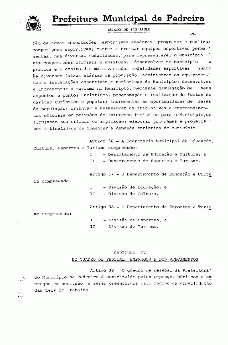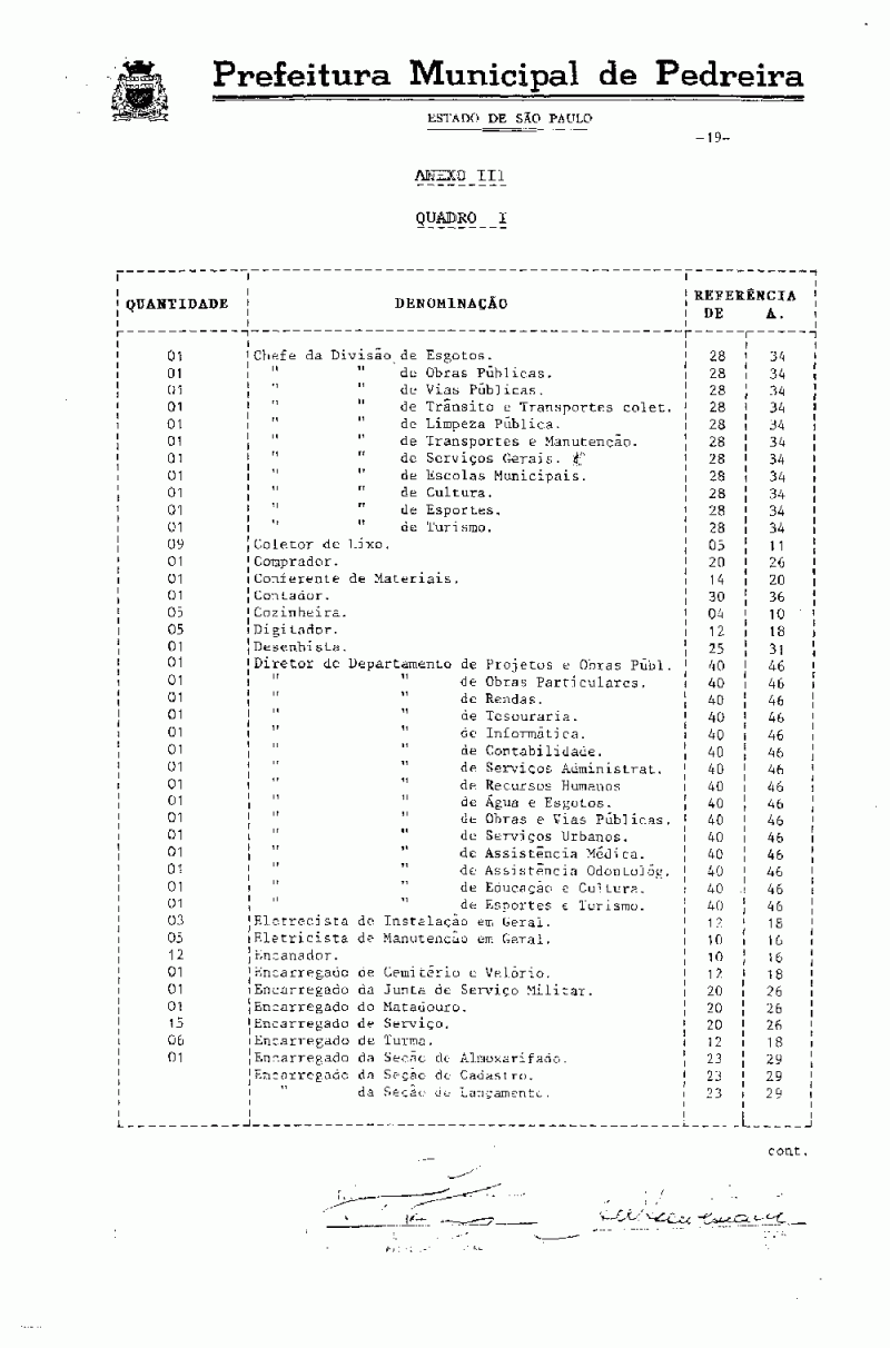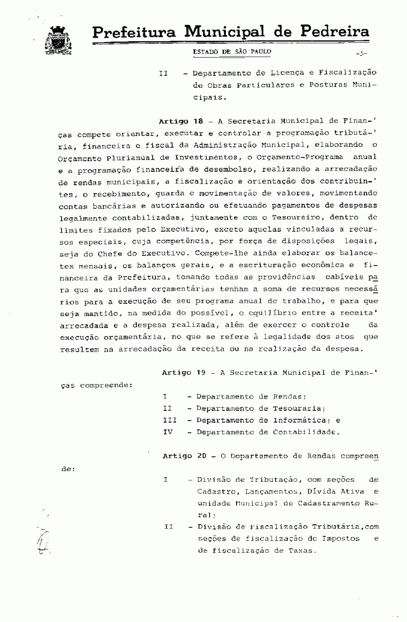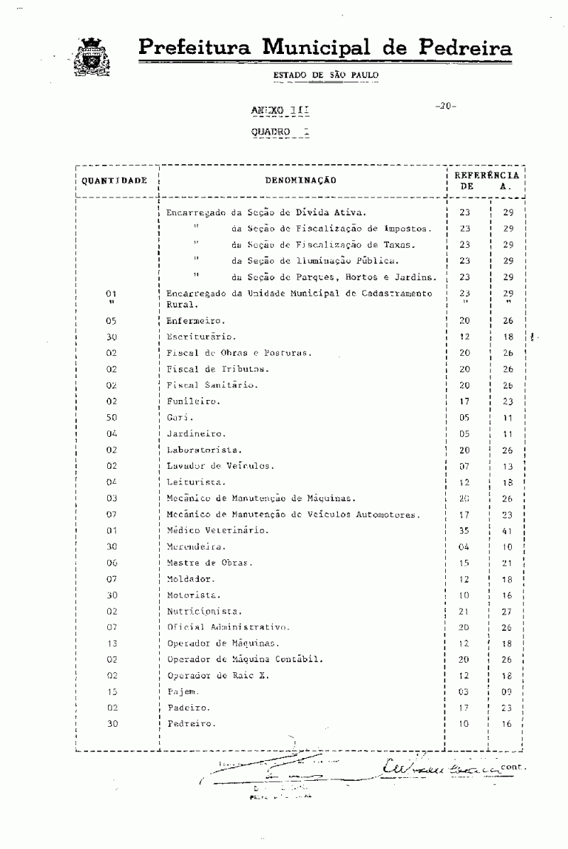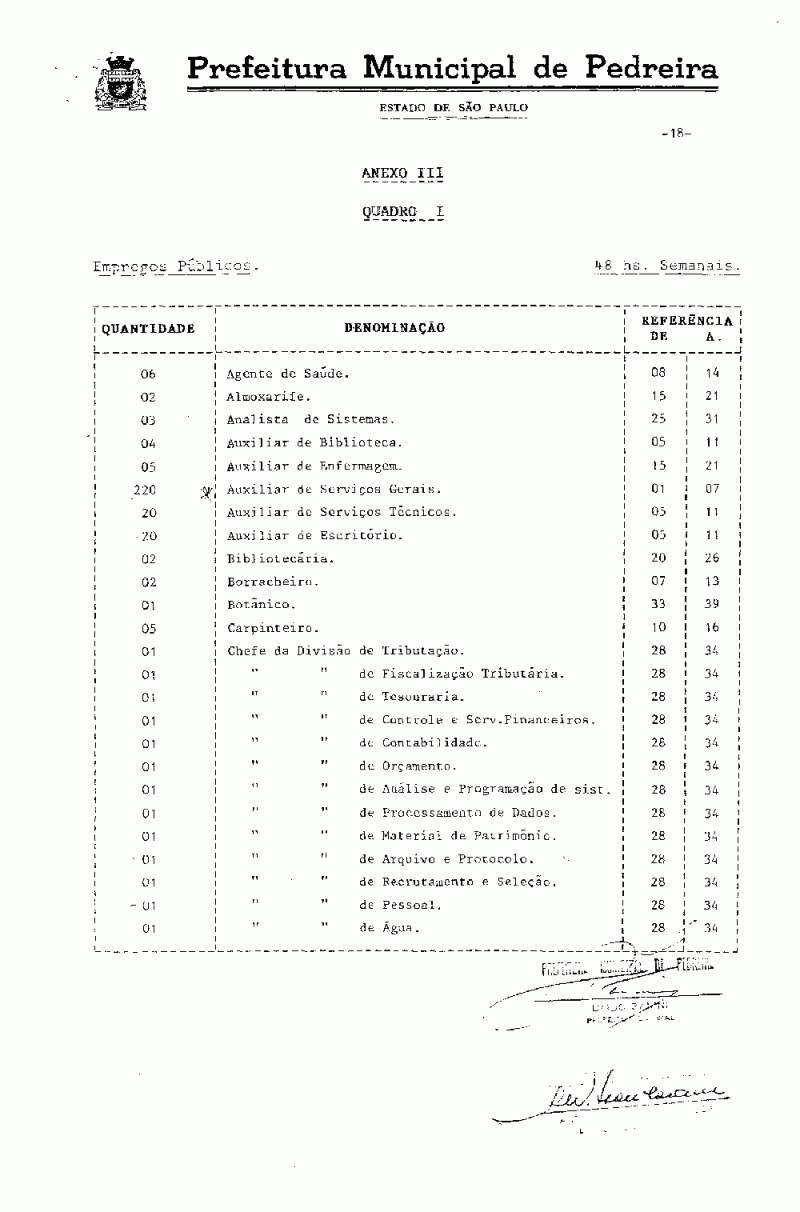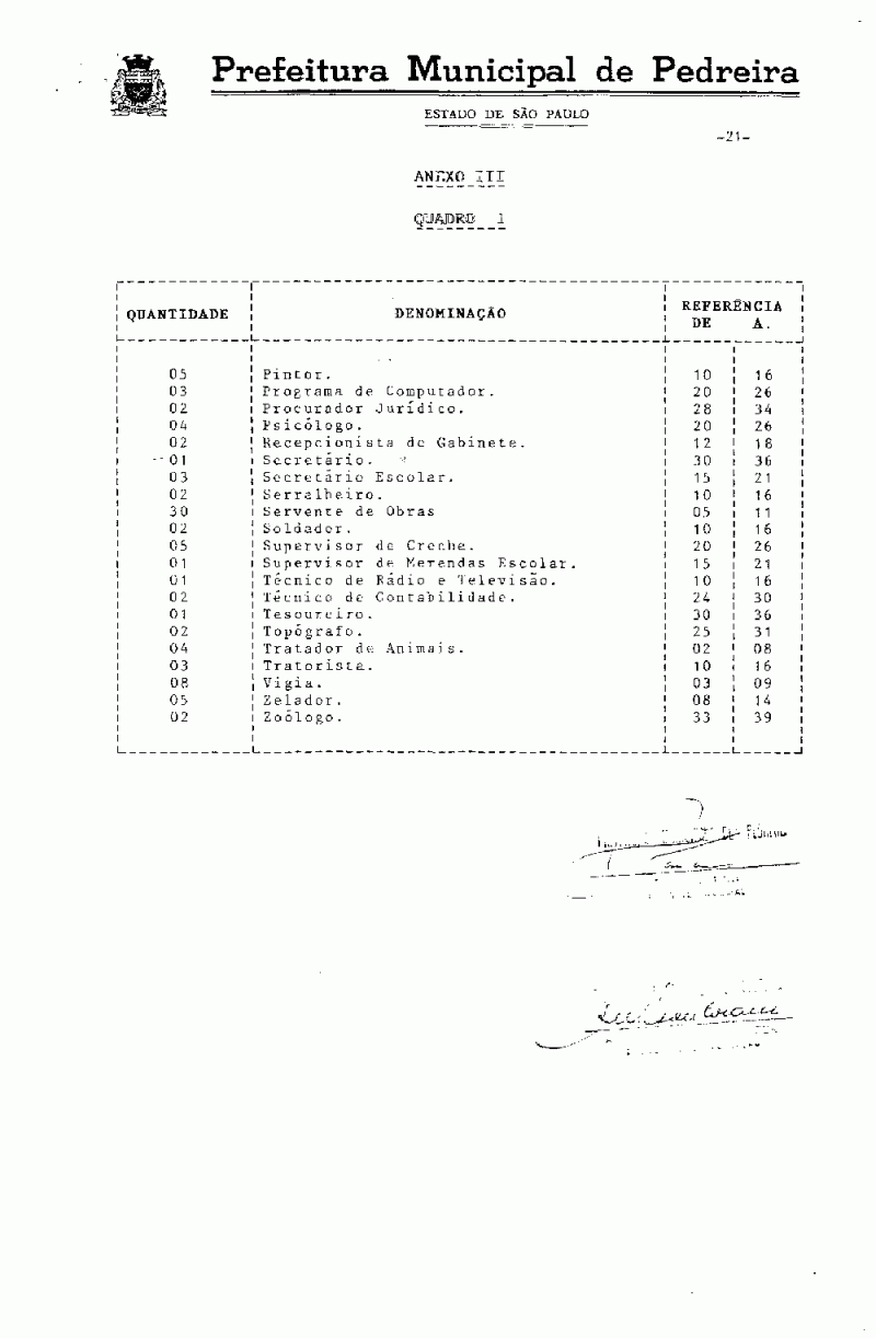 Ementa: Dispõe sobre a estrutura administrativa da Prefeitura Municipal de Pedreira e sobre a criação e nova denominação de cargos, estabelece níveis de vencimentos do funcionalismo público municipal e dá outras providências.