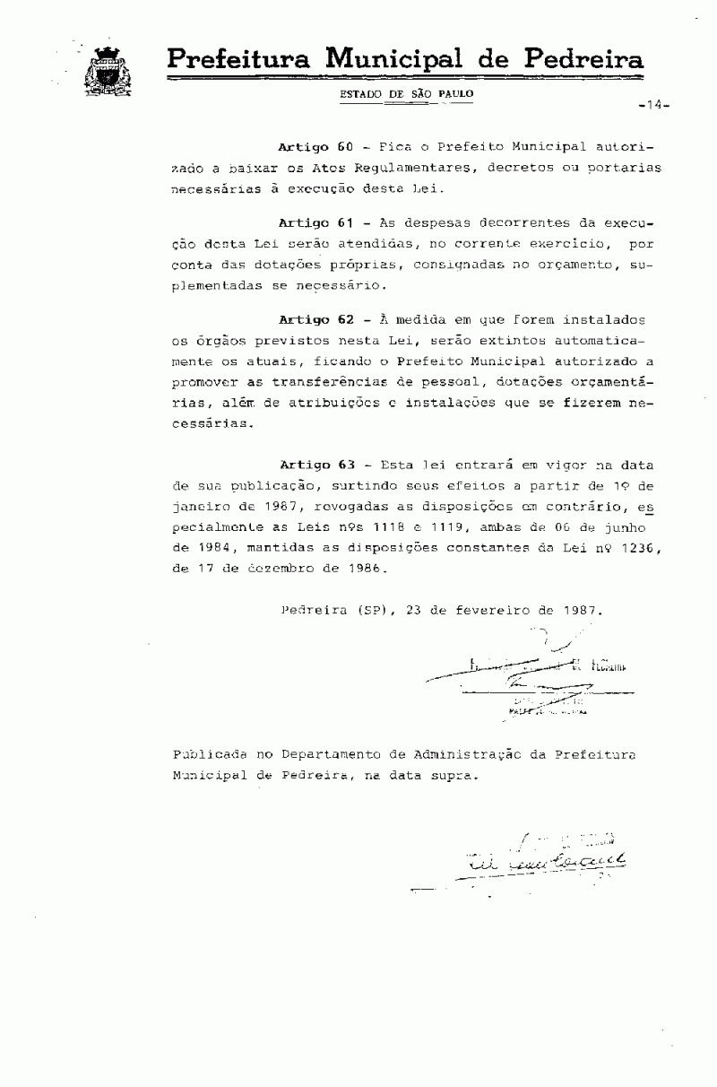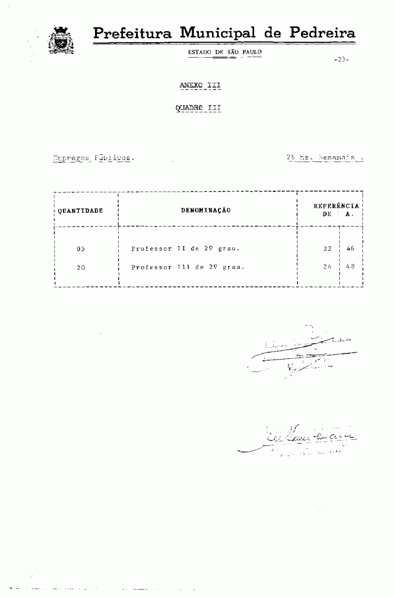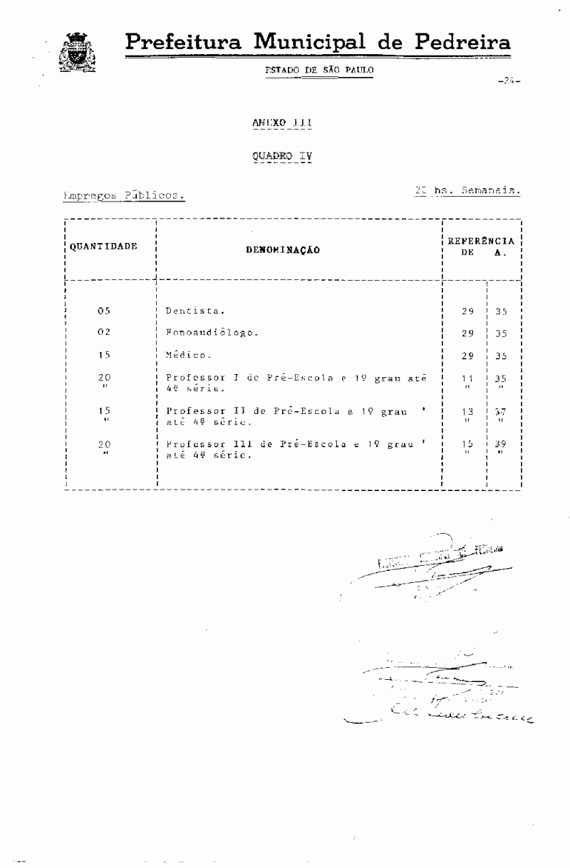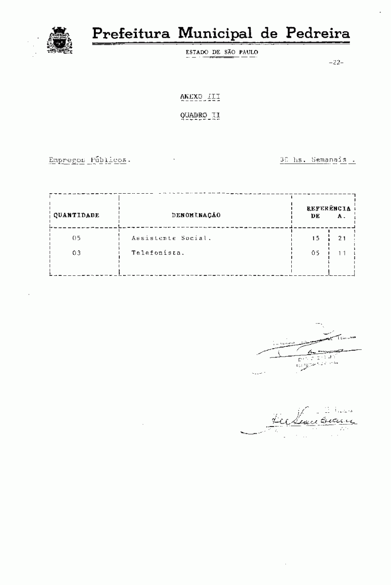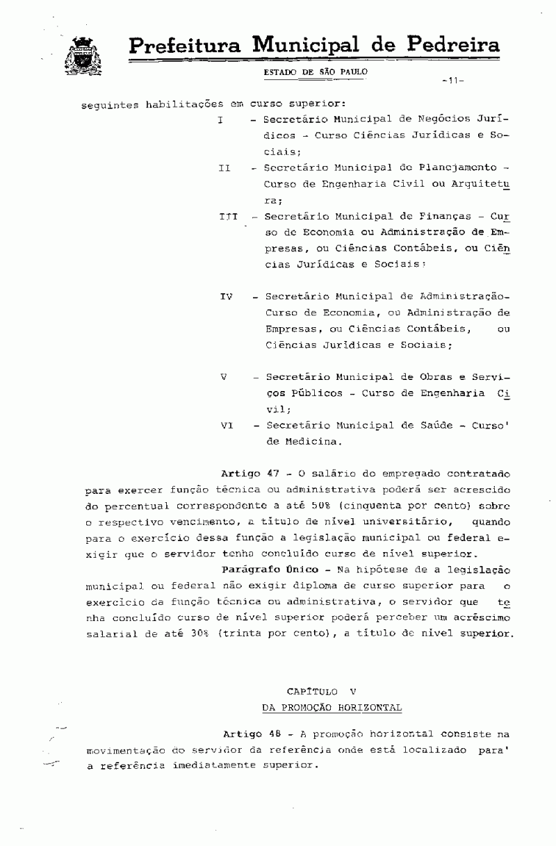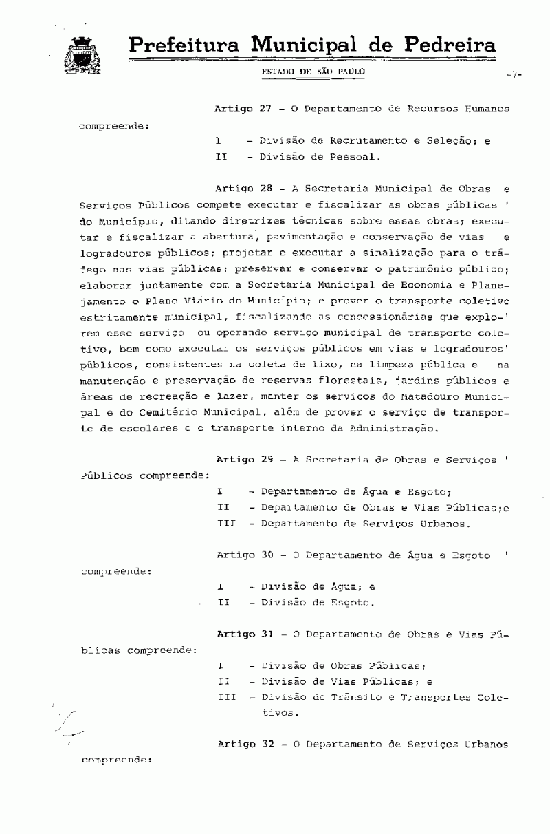 Ementa: Dispõe sobre a estrutura administrativa da Prefeitura Municipal de Pedreira e sobre a criação e nova denominação de cargos, estabelece níveis de vencimentos do funcionalismo público municipal e dá outras providências.