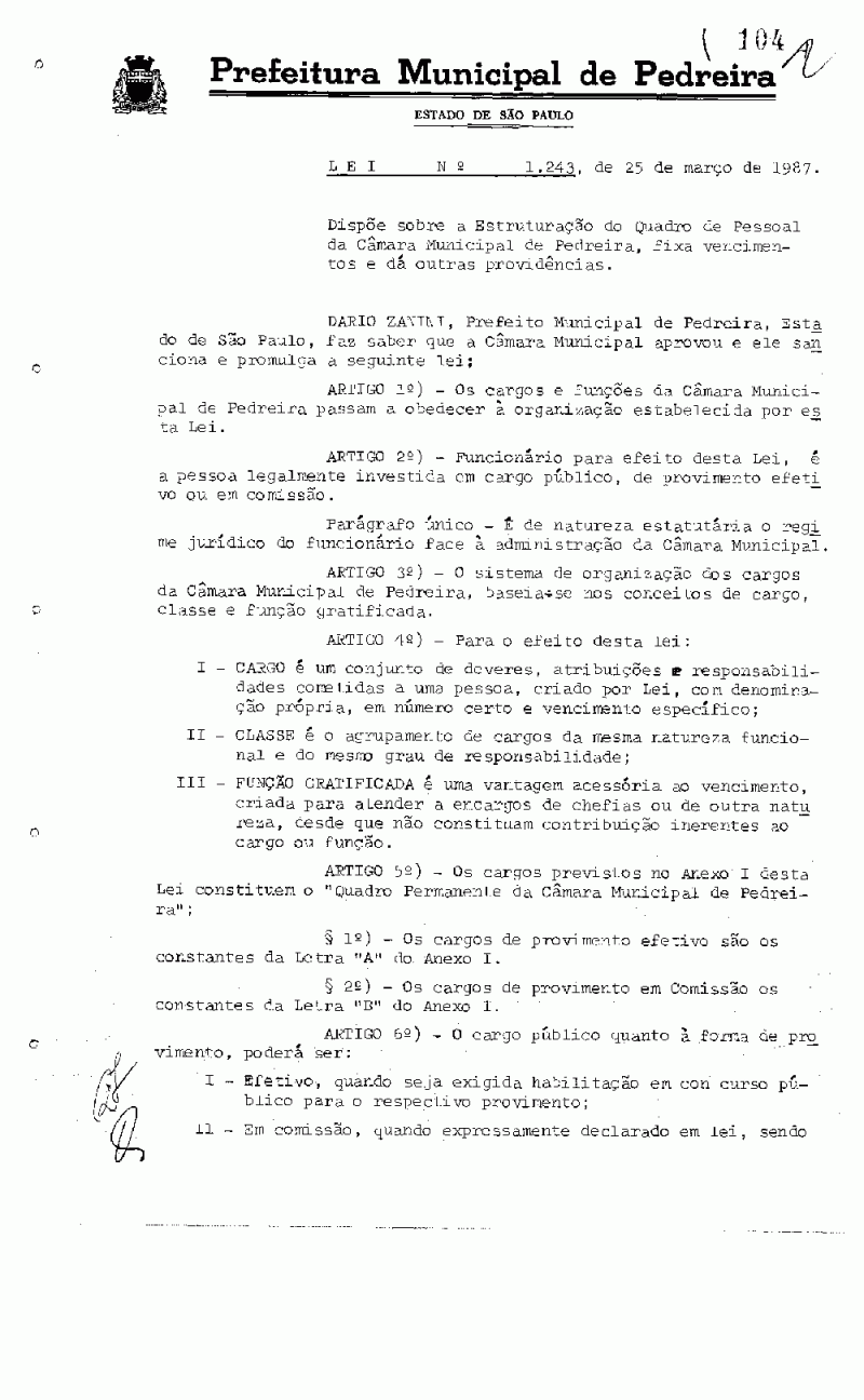 Lei Municipal - N° 1243 de 25/03/1987
