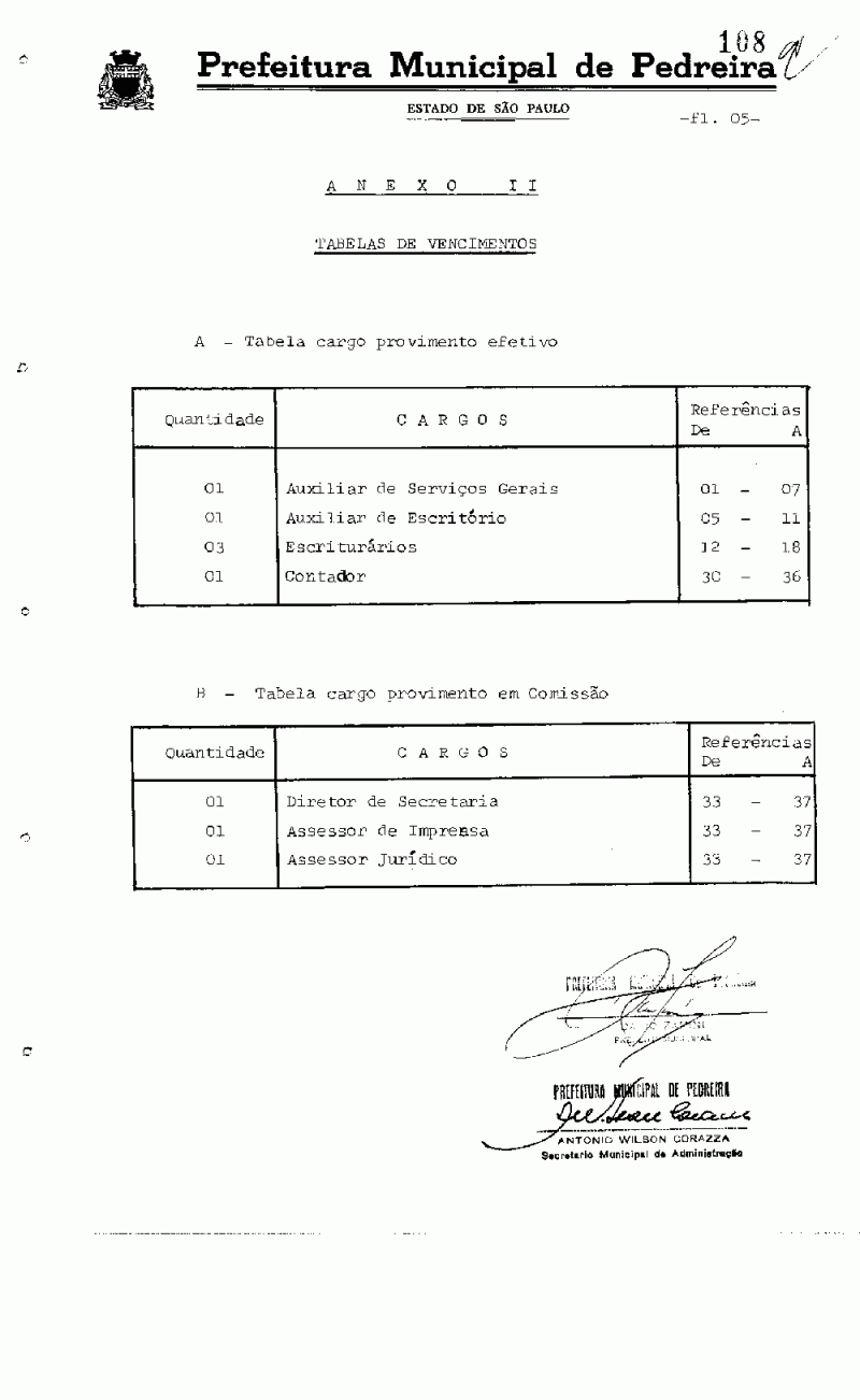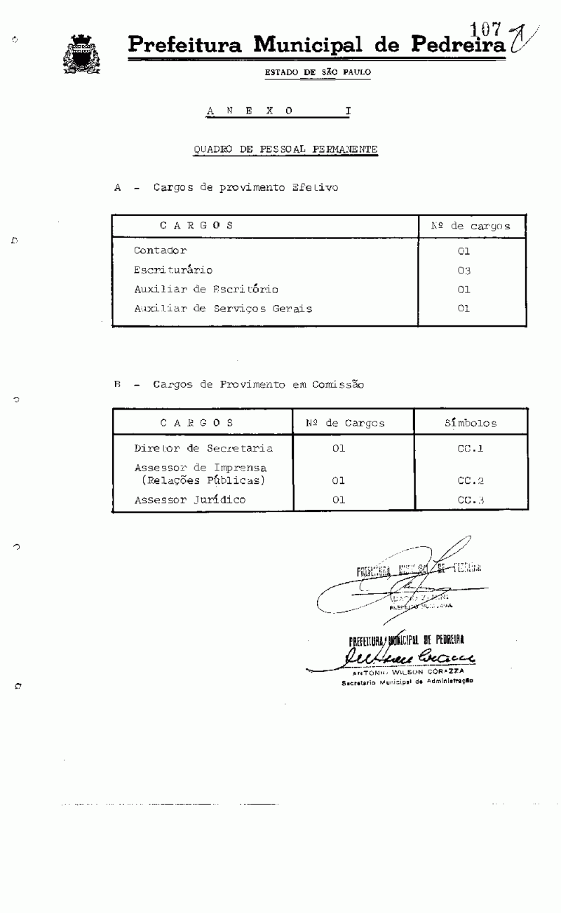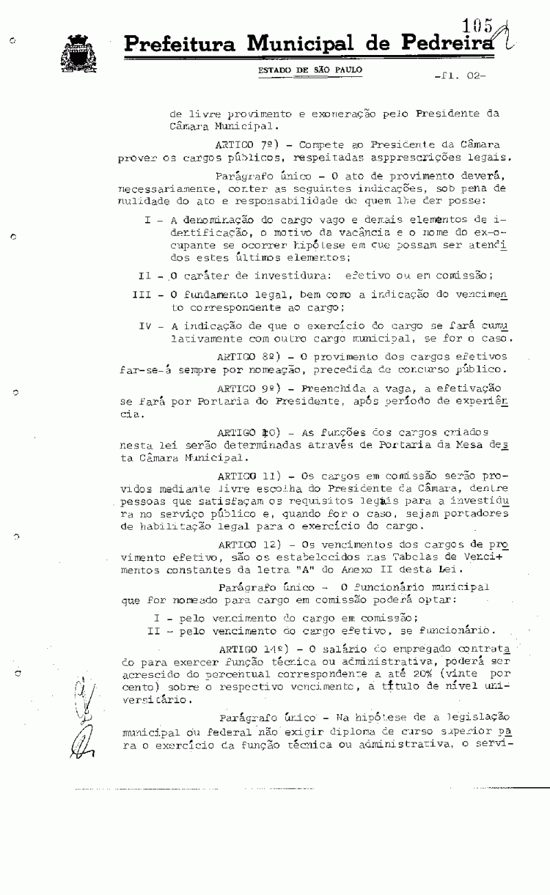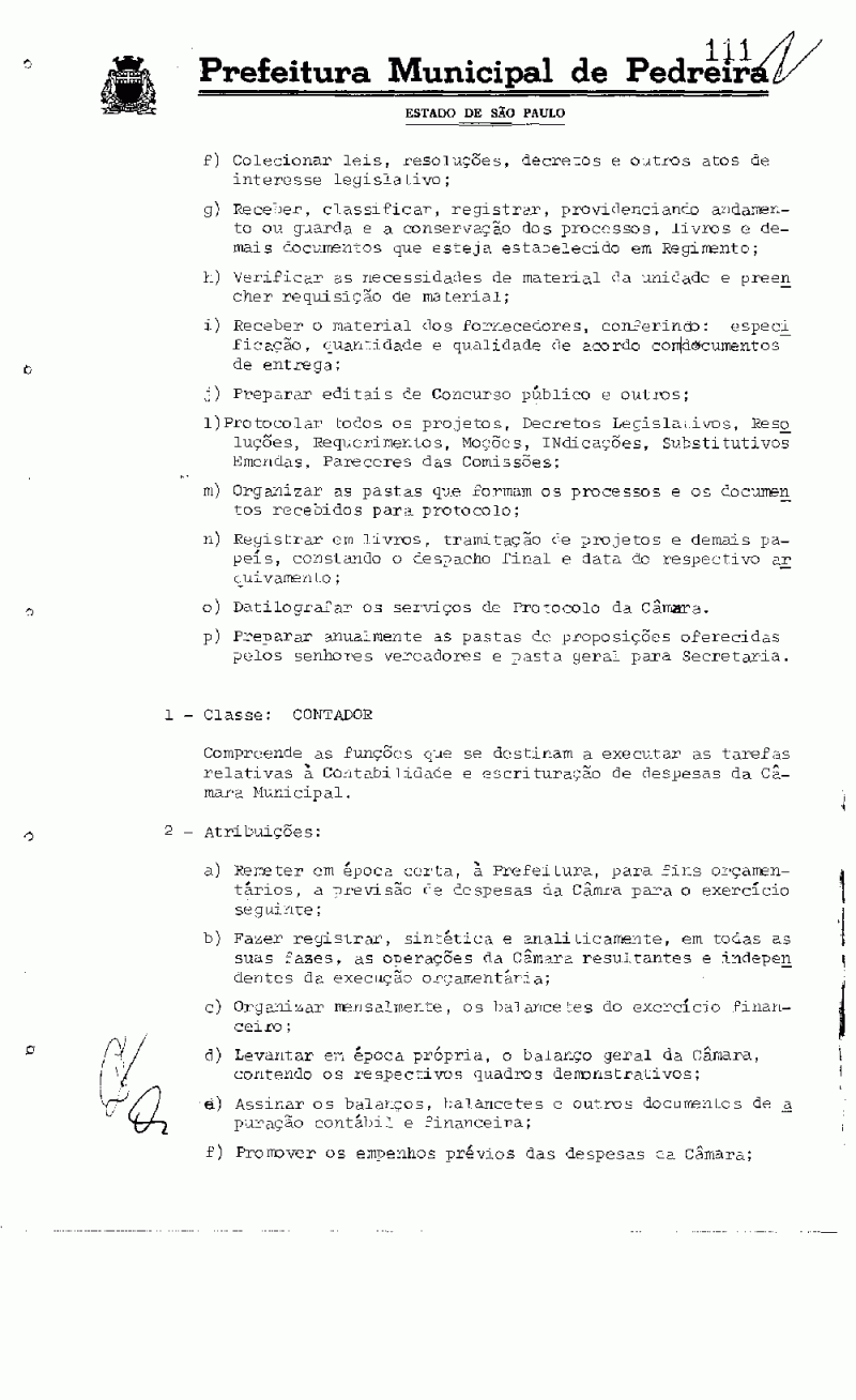 Ementa: Dispõe sobre a estruturação do Quadro de Pessoal da Câmara Municipal de Pedreira, fixa vencimentos e dá outras providências.