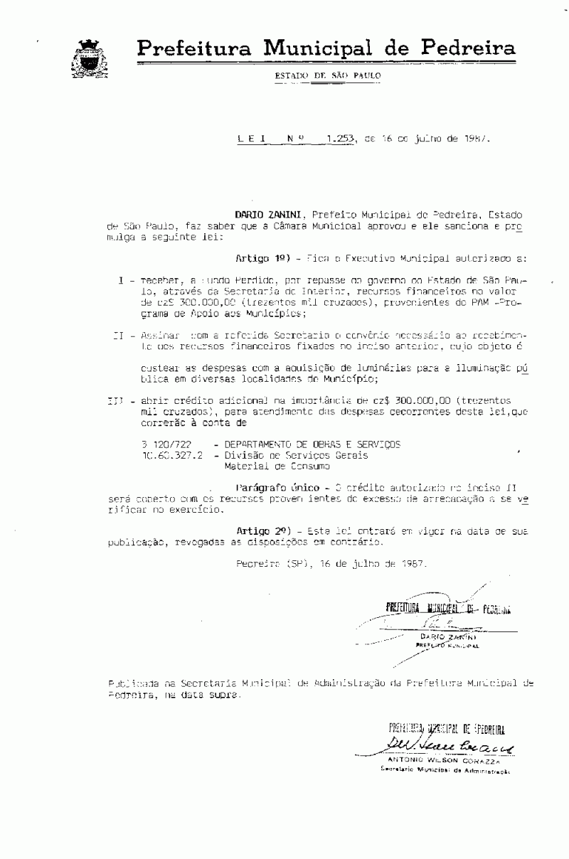 Lei Municipal - N° 1253 de 16/07/1987