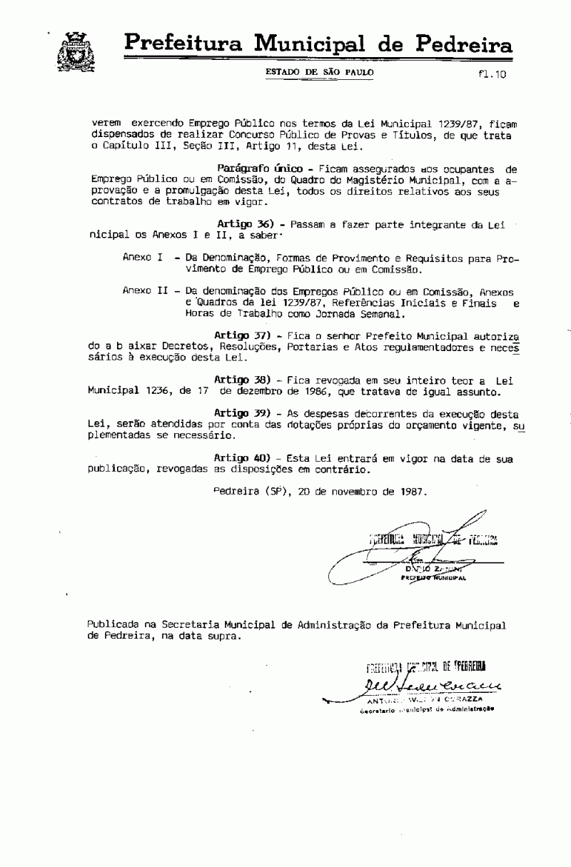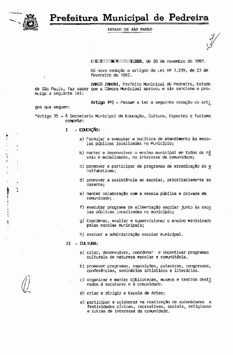 Lei Municipal - N° 1265 de 20/11/1987