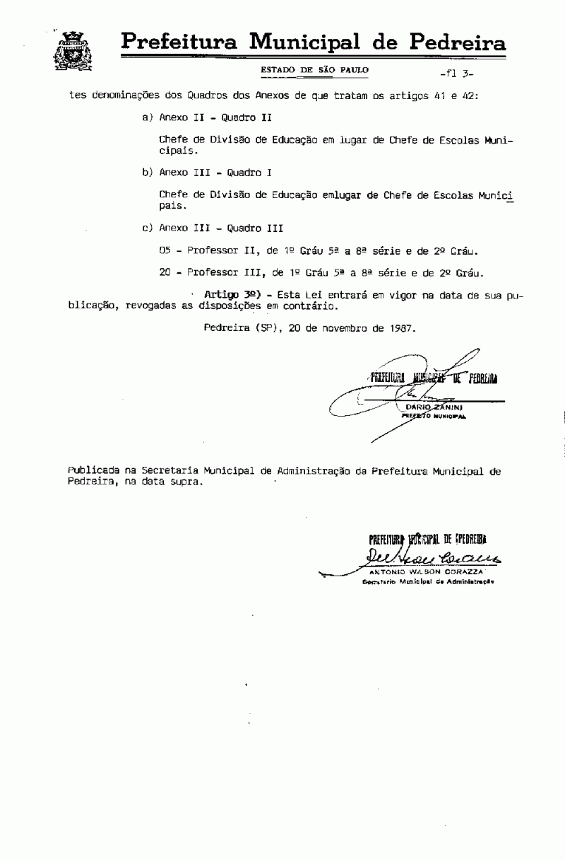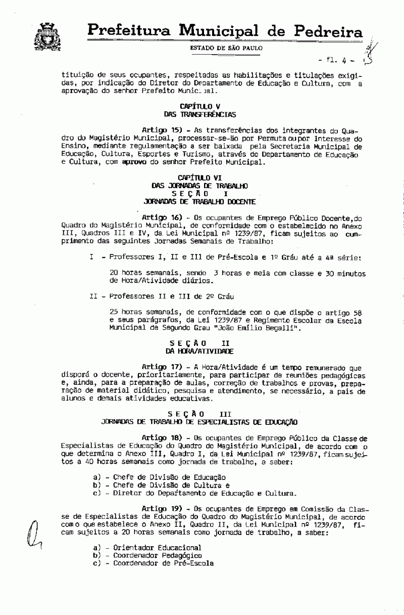 Ementa: Dá nova redação a artigos da Lei nº 1239, de 23 de fevereiro de 1987.