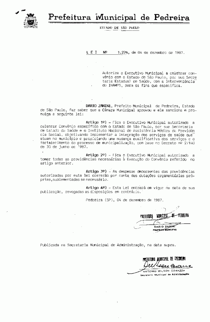 Lei Municipal - N° 1274 de 04/12/1987