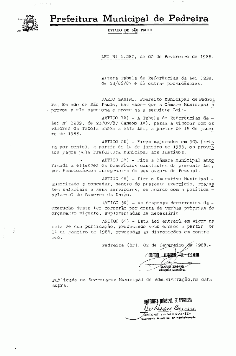 Lei Municipal - N° 1282 de 02/02/1988