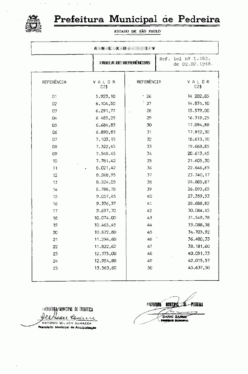 Ementa: Altera tabela de referências da Lei 1239, de 23/02/87 e dá outras providências.
