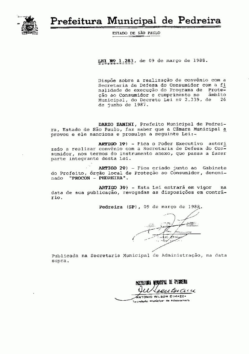 Lei Municipal - N° 1283 de 09/03/1988