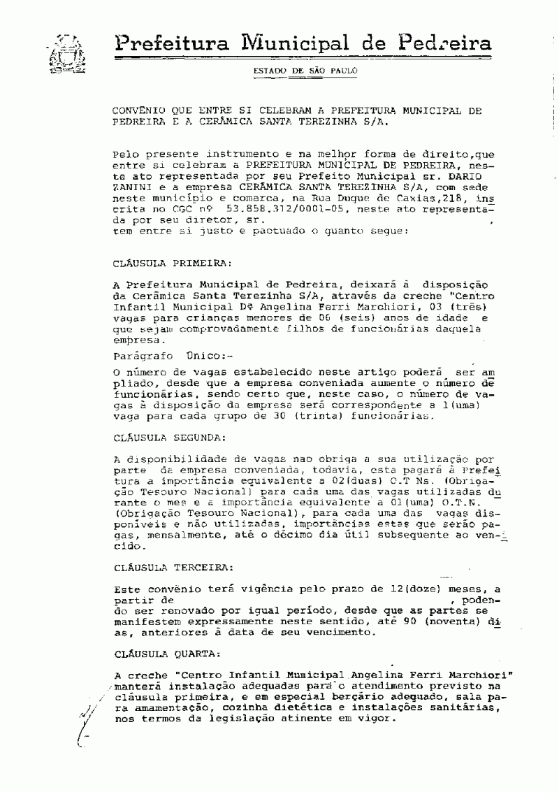 Ementa: Autoriza a Prefeitura Municipal de Pedreira a celebrar convênios que especifica e dá outras providências.