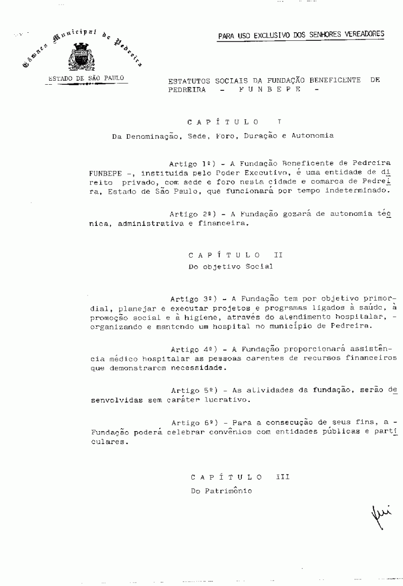 Ementa: Dispõe sobre a criação da Fundação Beneficente de Pedreira - FUNBEPE - , e dá outras providências.