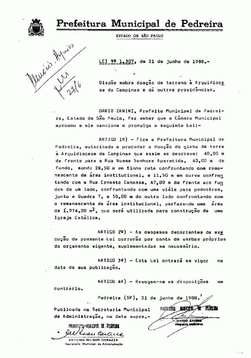 Lei Municipal - N° 1307 de 21/06/1988