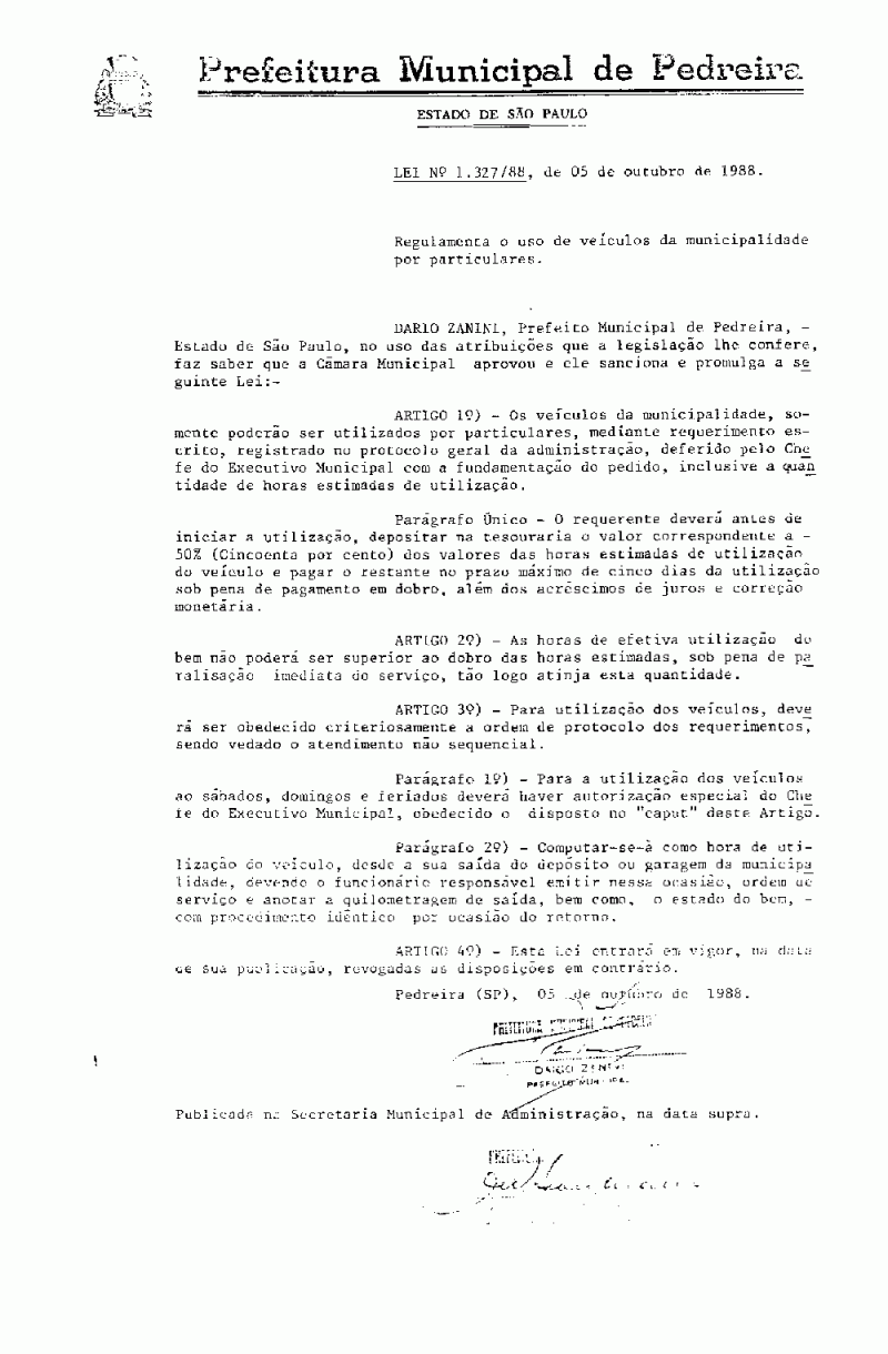 Lei Municipal - N° 1327 de 05/10/1988