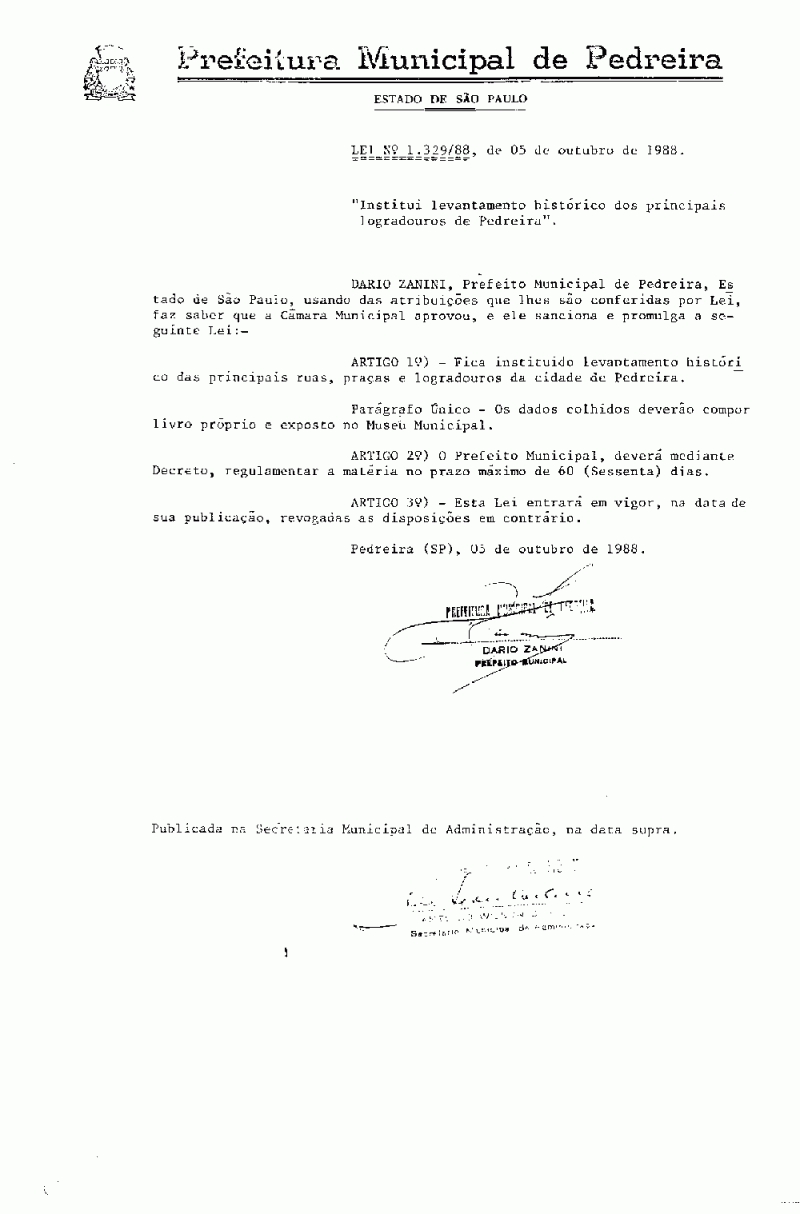 Ementa: Institui levantamento histórico dos principais logradouros de Pedreira.