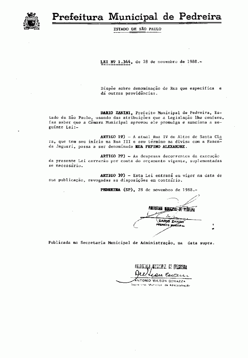 Lei Municipal - N° 1344 de 28/11/1988