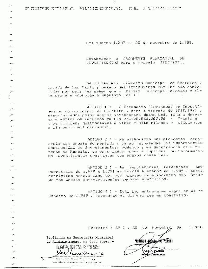 Lei Municipal - N° 1347 de 28/11/1988