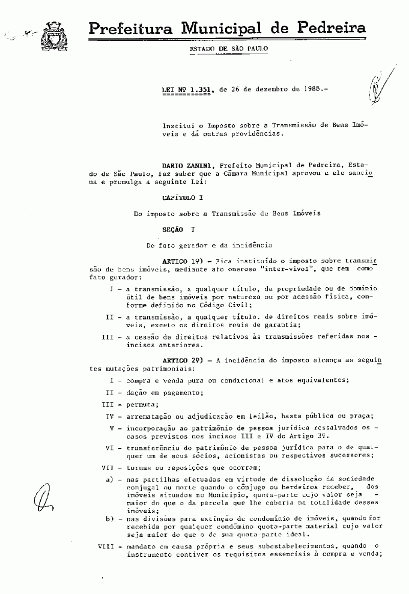 Lei Municipal - N° 1351 de 26/12/1988