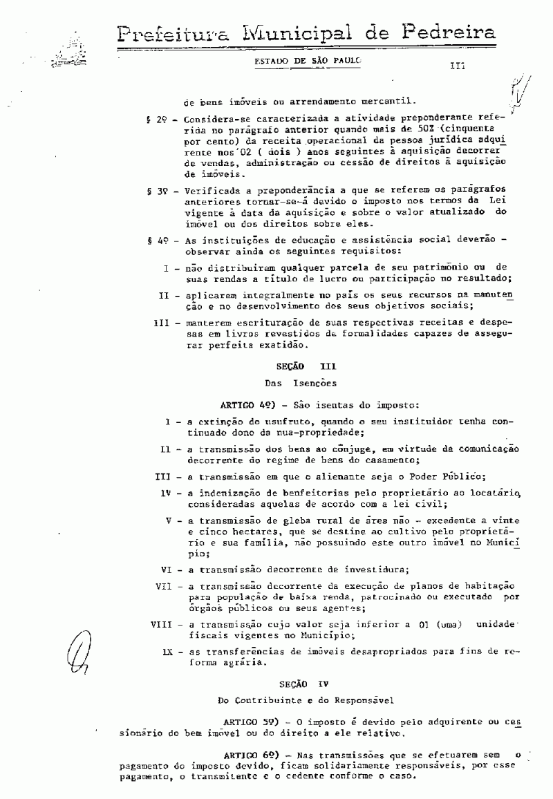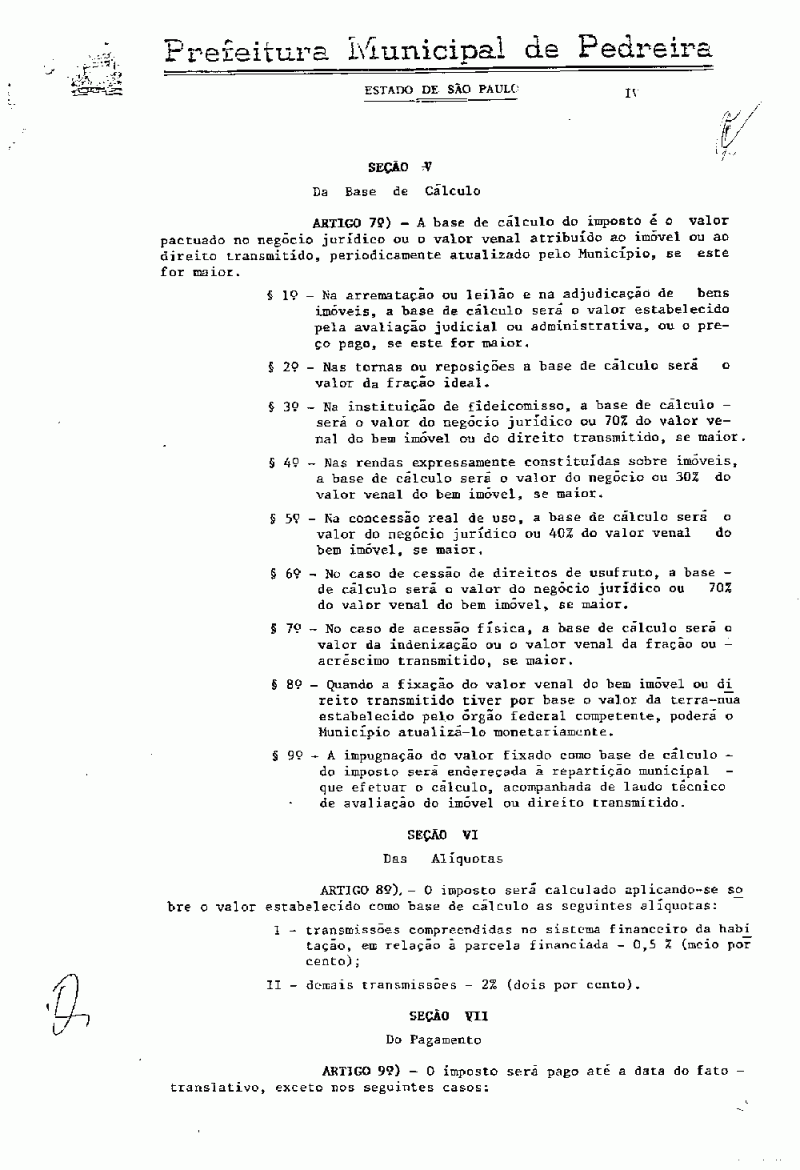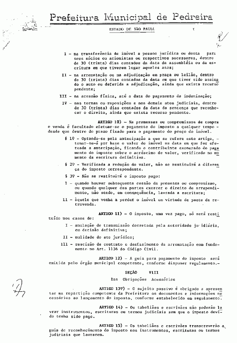 Ementa: Institui o Imposto sobre a Transmissão de Bens imóveis e dá outras providências.