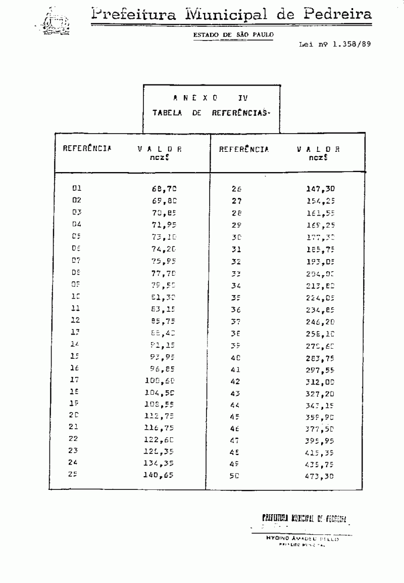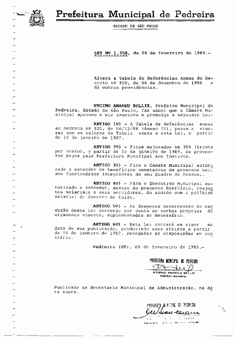 Ementa: Altera a Tabela de Referências Anexa do Decreto nº 920, de 06 de dezembro de 1988 e dá outras providências.