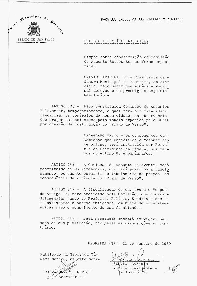 Resolucao - N° 1 de 21/01/1989