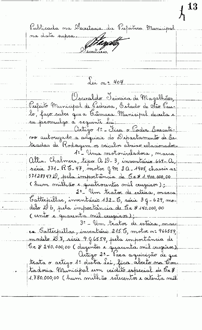 Lei Municipal - N° 404 de 29/12/1962
