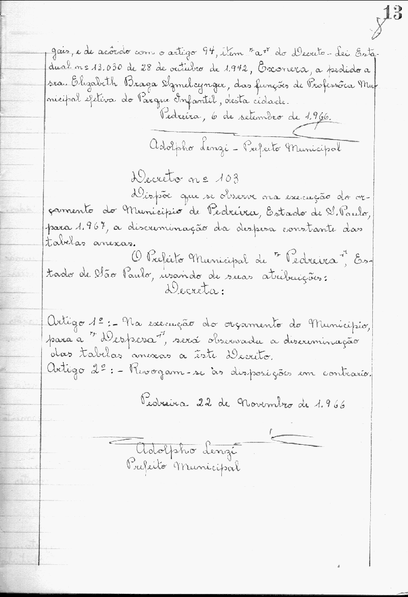 Ementa: Artigo 1° - Na execução do orçamento do Município, para a despesa, será observada a descriminação das tabelas anexas a este decreto
