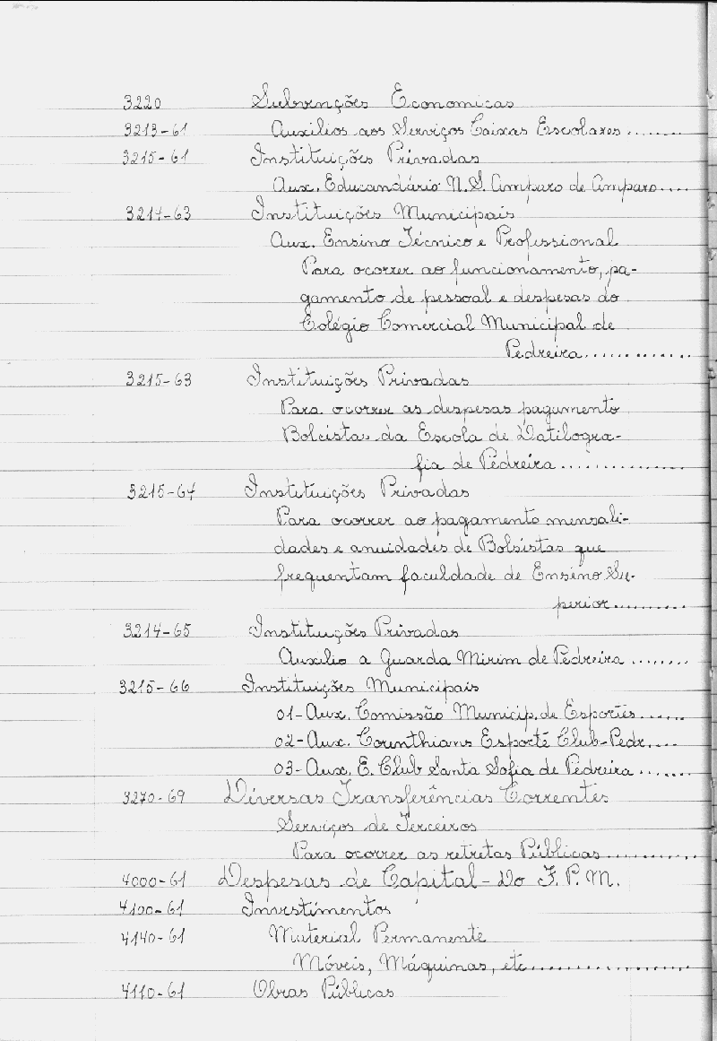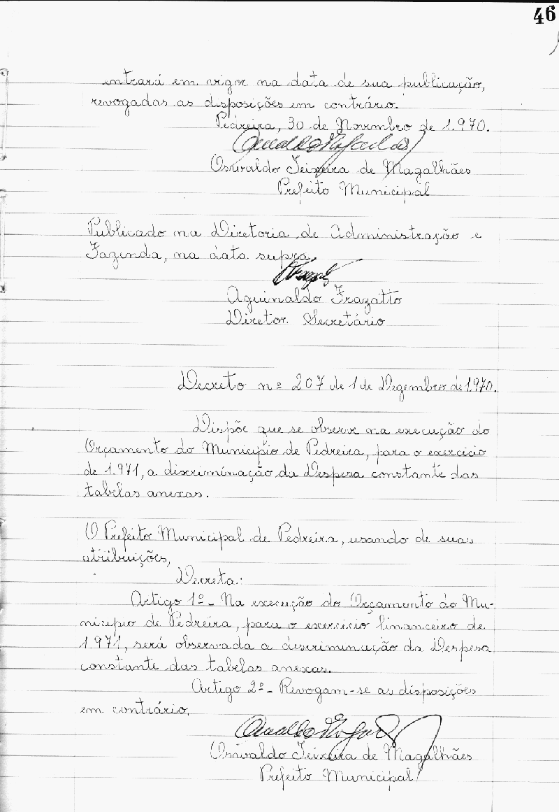Ementa: Artigo 1° - Na execução do Orçamento do Município de Pedreira, para o exercício financeiro de 1971, será observada das tabelas anexas