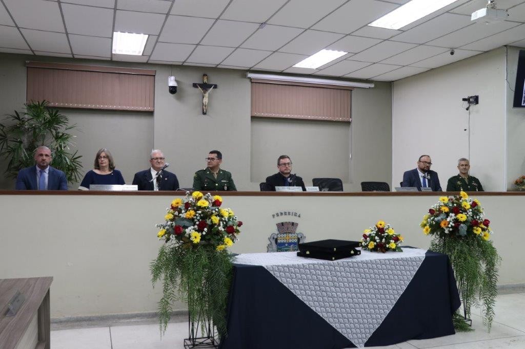 A Solenidade foi conduzida pelo Presidente João Rafael Cavenaghi, que fez a abertura da cerimônia agradecendo a presença de todos os convidados, especialmente dos homenageados e familiares. A Mesa Principal foi composta, além do Presidente da Casa, pelo 1º e 2º Secretários: Vereadores Leonardo Henrique Cirino e João Paulo Paulella; pela Vice-Prefeita Magda Bellix (representando o Prefeito Fábio Polidoro); pelos três homenageados e também pelo SubTenente – Chefe da Instrução do Tiro de Guerra 02-093 de Pedreira, Sr. Samoel Simão Bresolin.