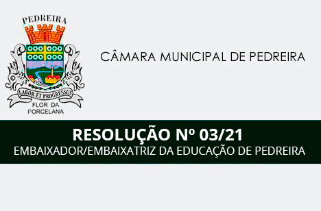 RESOLUÇÃO Nº 03/21 - EMBAIXADOR/EMBAIXATRIZ DA EDUCAÇÃO DE PEDREIRA