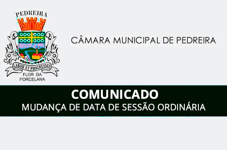 O PRESIDENTE DA CÂMARA MUNICIPAL DE PEDREIRA/SP, INFORMA QUE EM CARATER EXCEPCIONAL, A 16ª SESSÃO LEGISLATIVA ORDINÁRIA DO DIA 18 DE OUTUBRO DE 2021, FOI REDESIGNADA PARA O DIA 25 DE OUTUBRO DE 2021 (SEGUNDA-FEIRA) ÀS 19 HORAS.
