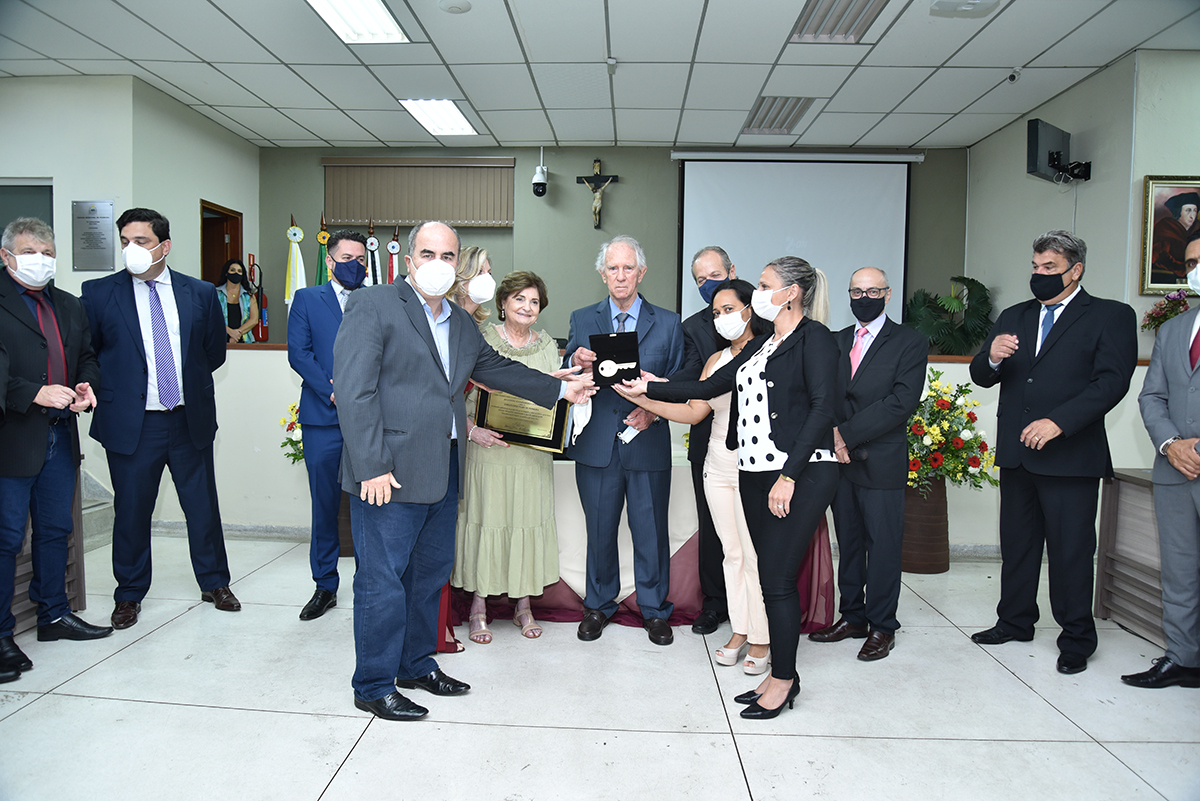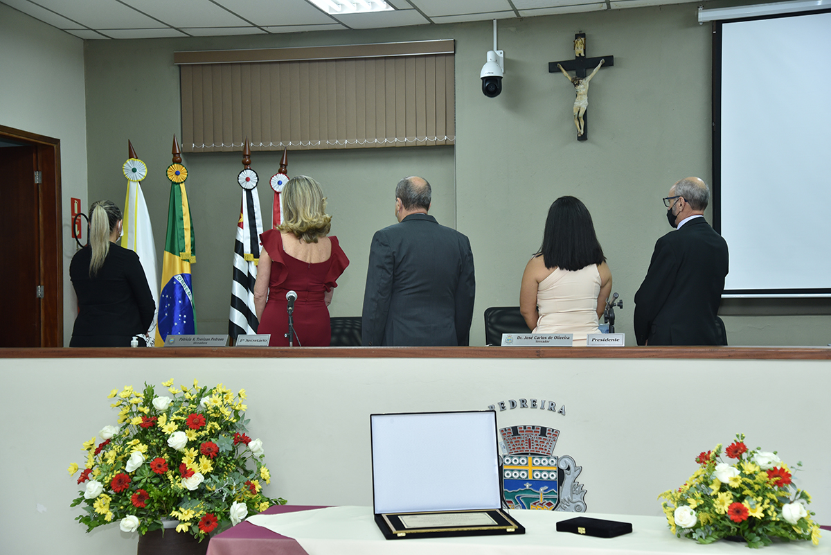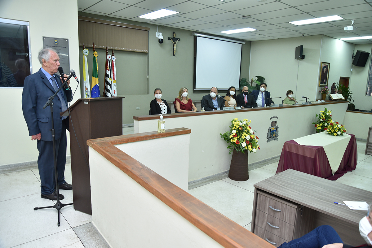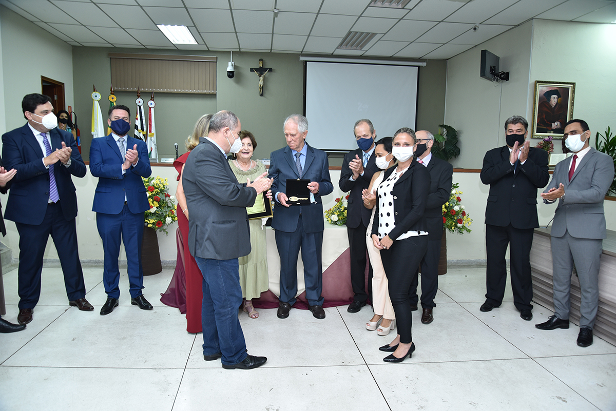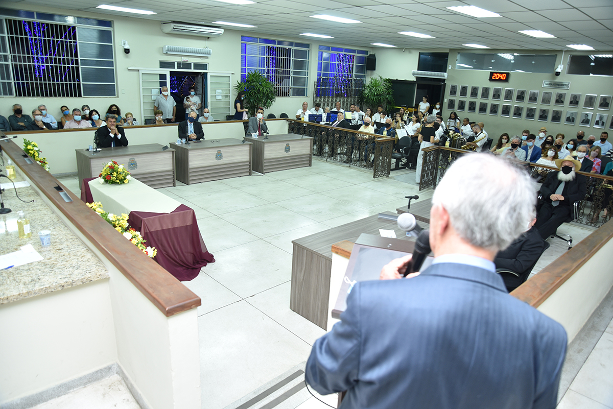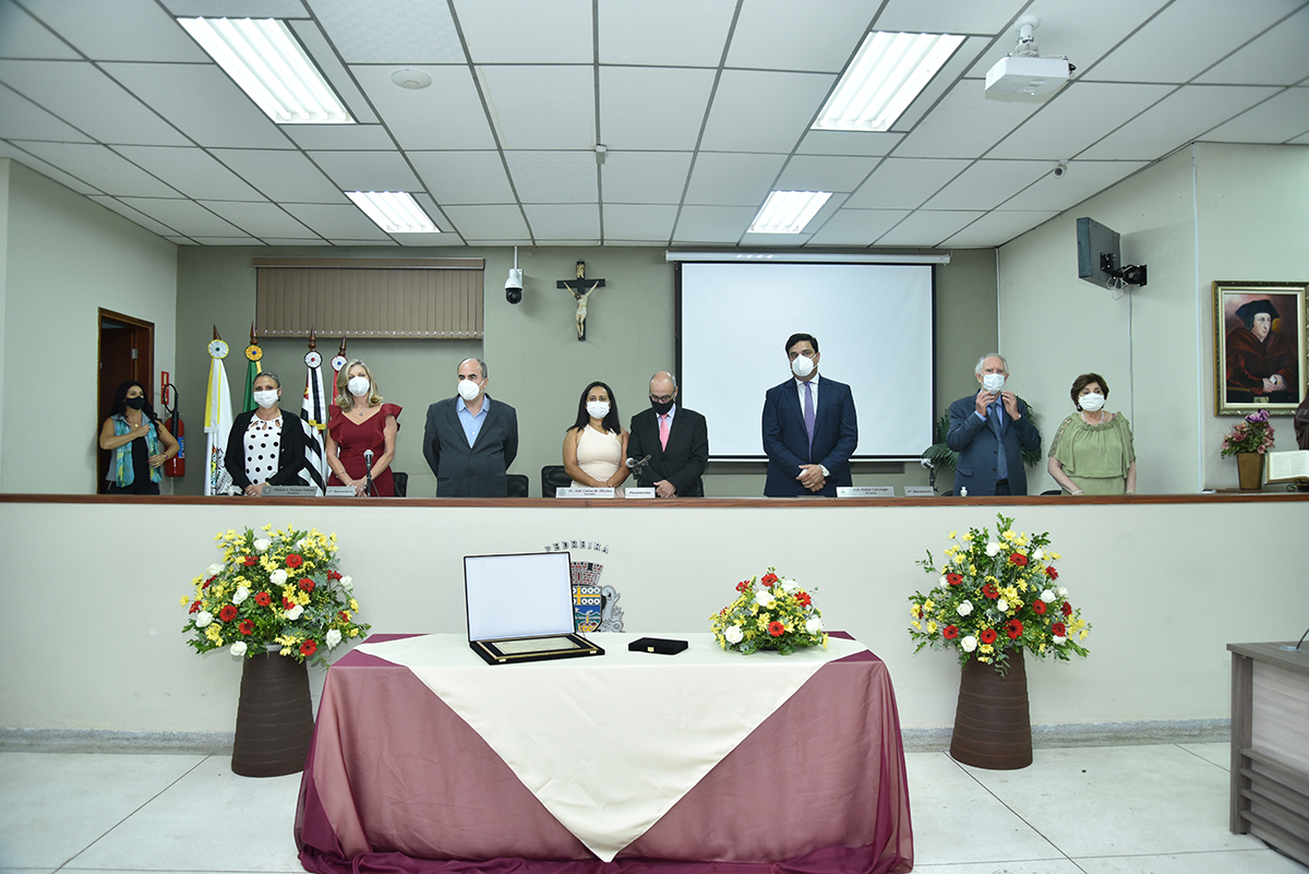 A Solenidade foi presidida pelo Presidente Dr. José Carlos de Oliveira, que fez a abertura da cerimônia agradecendo a presença do homenageado, de seus familiares, dos Vereadores deste Legislativo e das demais autoridades presentes: Sr. Hamilton Bernardes Junior – Prefeito Municipal; Sr. Fábio Vinicius Polidoro – Vice-Prefeito do nosso Município; como também dos Secretários Municipais e demais convidados que abrilhantaram o evento, além da especial participação da Corporação Musical Santana.