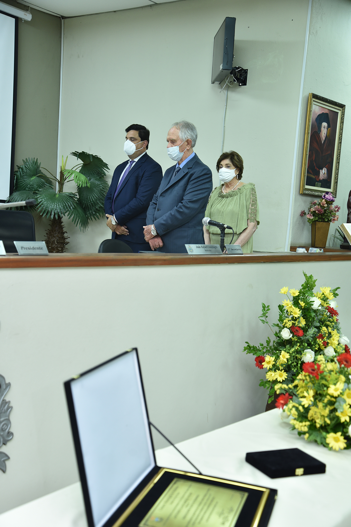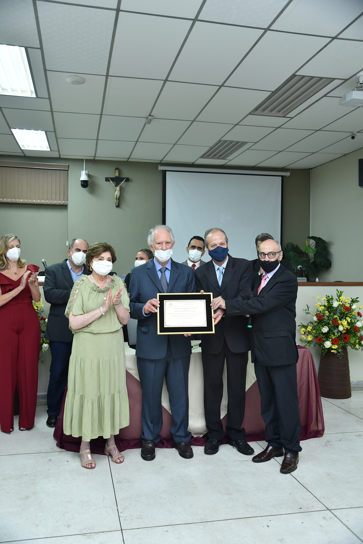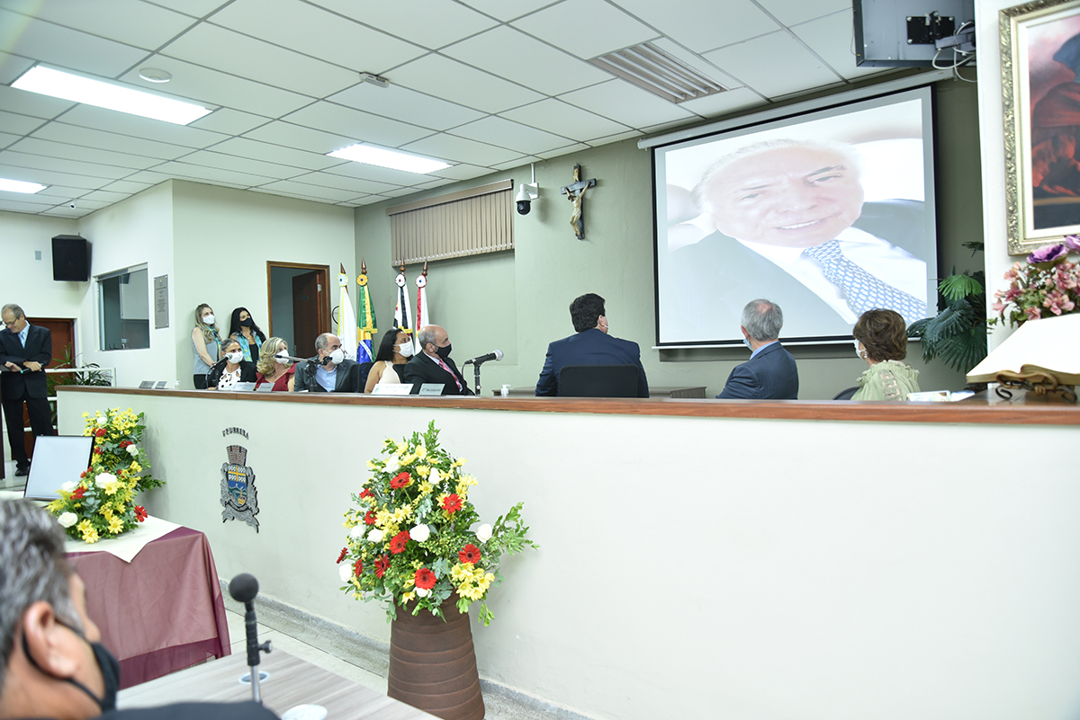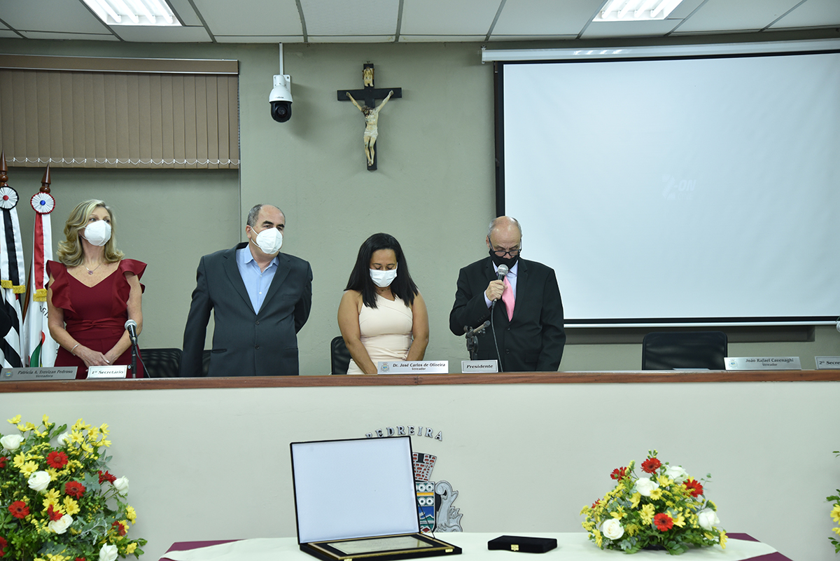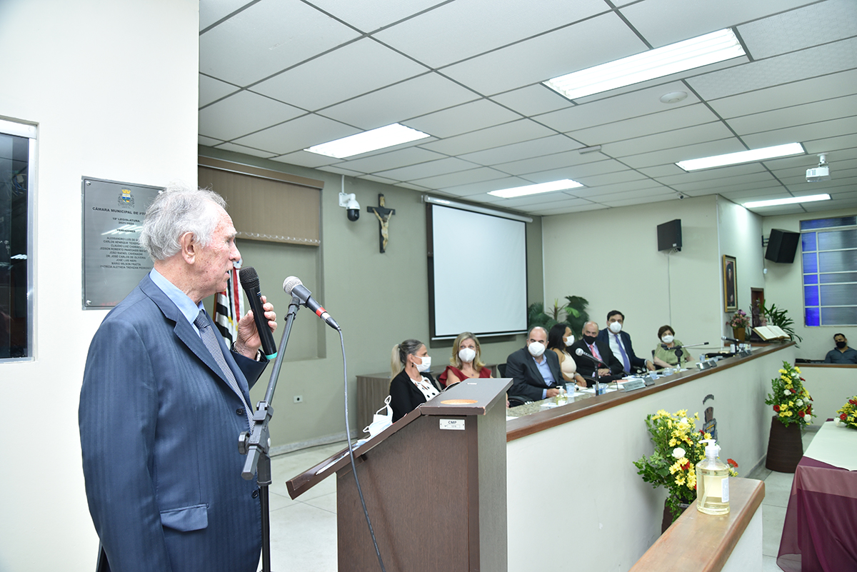 A Solenidade foi presidida pelo Presidente Dr. José Carlos de Oliveira, que fez a abertura da cerimônia agradecendo a presença do homenageado, de seus familiares, dos Vereadores deste Legislativo e das demais autoridades presentes: Sr. Hamilton Bernardes Junior – Prefeito Municipal; Sr. Fábio Vinicius Polidoro – Vice-Prefeito do nosso Município; como também dos Secretários Municipais e demais convidados que abrilhantaram o evento, além da especial participação da Corporação Musical Santana.