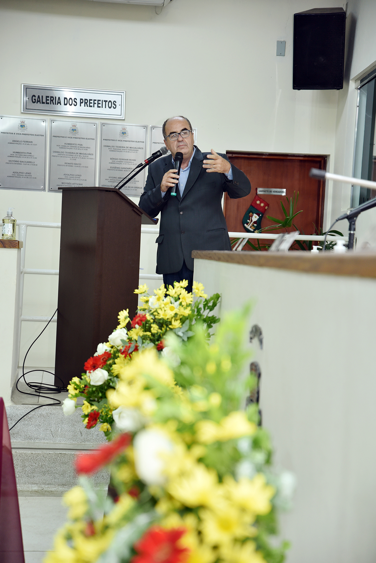 Todos os convidados foram agraciados também com o pronunciamento do querido Toninho Ganzarolli que não mediu palavras de agradecimentos e alegria pela honraria recebida. Toninho também disse que essa data será inesquecível, não só para ele, como também para todos que caminharam ao seu lado, principalmente na época da Feira Industrial de Pedreira, que perdurou por vários anos. O Prefeito Hamilton Bernardes Junior também discorreu sobre a merecida homenagem ao amigo Toninho Ganzarolli, que foi seu Vice-Prefeito em dois mandatos, como também elogiou a iniciativa do Vereador Claudinho Cassiani na concessão desta honraria. Finalizando o evento, o Presidente da Câmara Municipal disse estar muito contente em presidir a cerimônia, pelo merecido reconhecimento ao ilustre Empresário Toninho Ganzarolli.