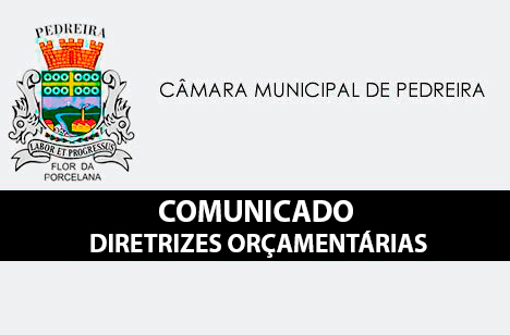 DR. JOSÉ CARLOS DE OLIVEIRA, NA QUALIDADE DE PRESIDENTE DA CÂMARA MUNICIPAL DE PEDREIRA, INFORMA QUE JÁ SE ENCONTRA JUNTO À SECRETARIA ADMINISTRATIVA E NO SITE DA CÂMARA MUNICIPAL PARA CONHECIMENTO E ANÁLISE DOS SENHORES VEREADORES, BEM COMO DE TODA A POPULAÇÃO PEDREIRENSE, O PROJETO DE LEI Nº 47/22 – PREFEITO MUNICIPAL - ESTABELECE AS DIRETRIZES A SEREM OBSERVADAS NA ELABORAÇÃO DA LEI ORÇAMENTÁRIA DO MUNICÍPIO DE PEDREIRA PARA O EXERCÍCIO DE 2023 E DÁ OUTRAS PROVIDÊNCIAS.