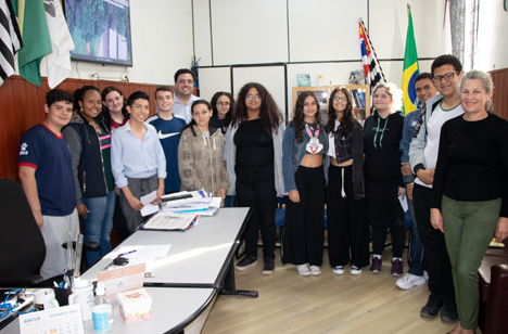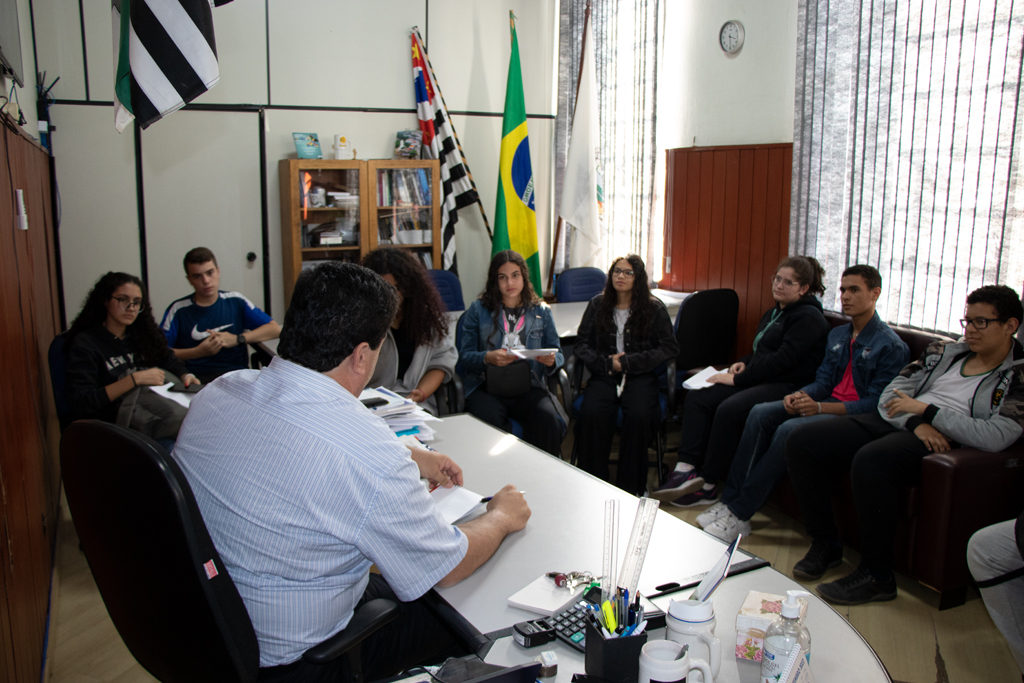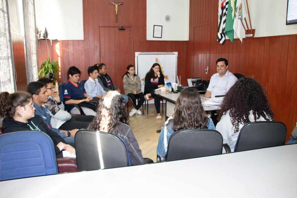 Os alunos que integram o Parlamento Jovem foram muito bem recepcionados pelo Prefeito Fábio e sua assessoria, onde tiveram a oportunidade de expor alguns assuntos contidos na pauta da Sessão Ordinária Jovem que ocorreu no mês de agosto. O Prefeito respondeu todas as dúvidas, recebeu com muito carinho as sugestões indicadas nos pedidos e fez anotações de várias questões apontadas pelos parlamentares jovens.
