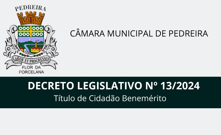 O Presidente da Câmara Municipal de Pedreira, Estado de São Paulo, usando de suas atribuições legais, faz saber que a Câmara Municipal aprovou e ele sanciona e promulga o seguinte Decreto Legislativo:-