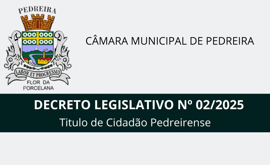 O Presidente da Câmara Municipal de Pedreira, Estado de São Paulo, usando de suas atribuições legais, faz saber que a Câmara Municipal aprovou e ele sanciona e promulga o seguinte Decreto Legislativo:-