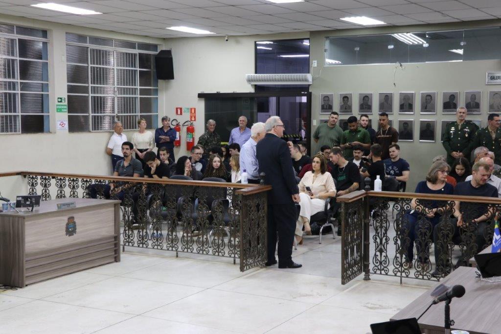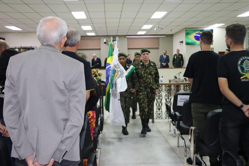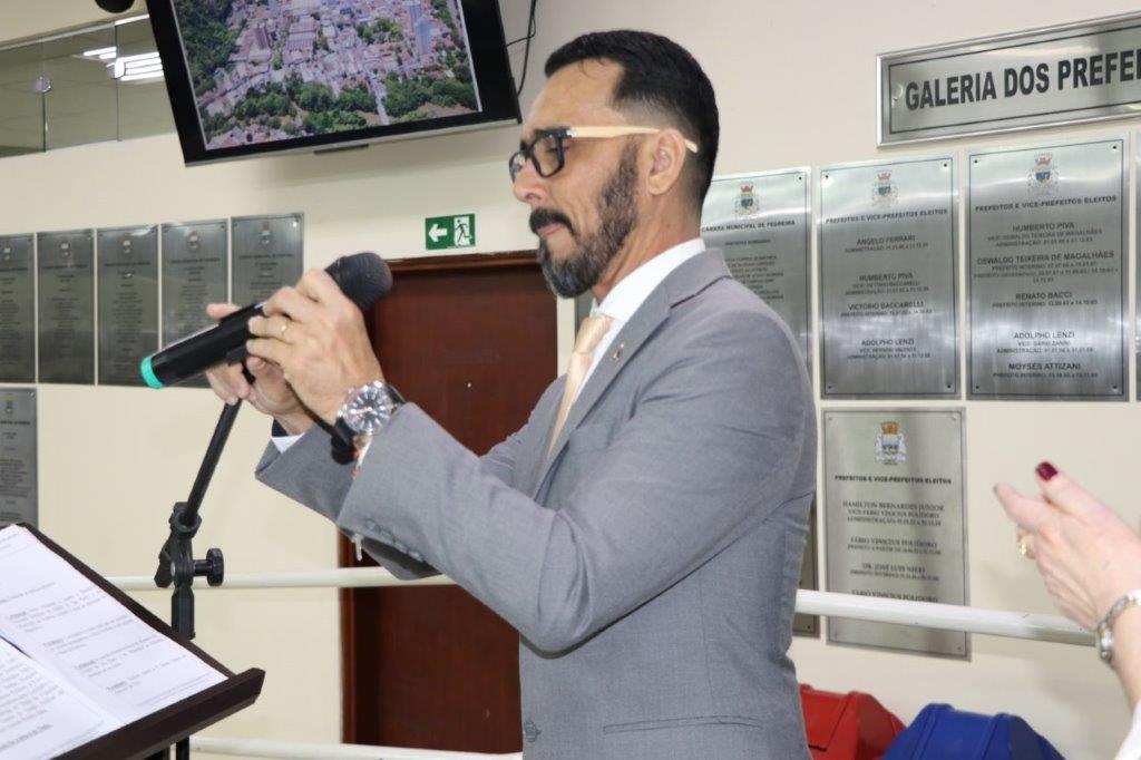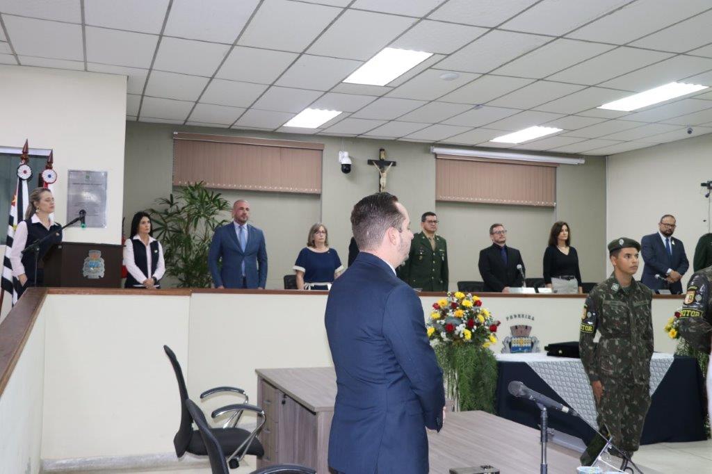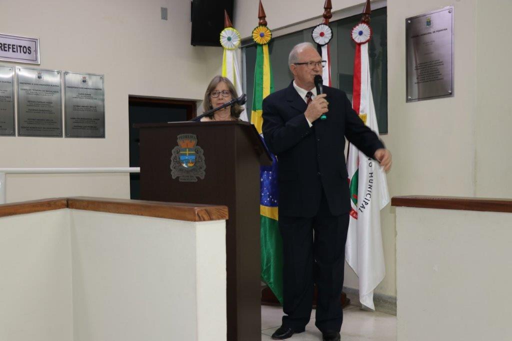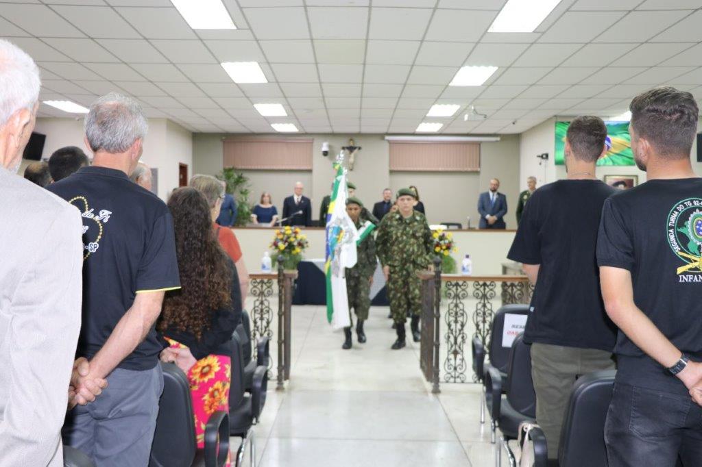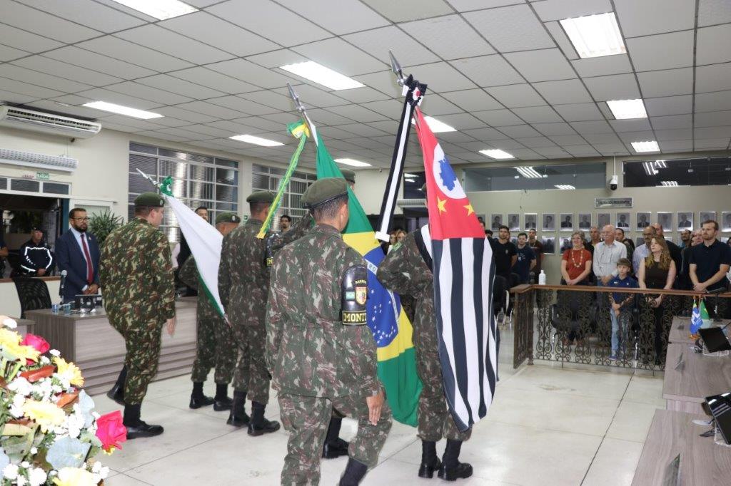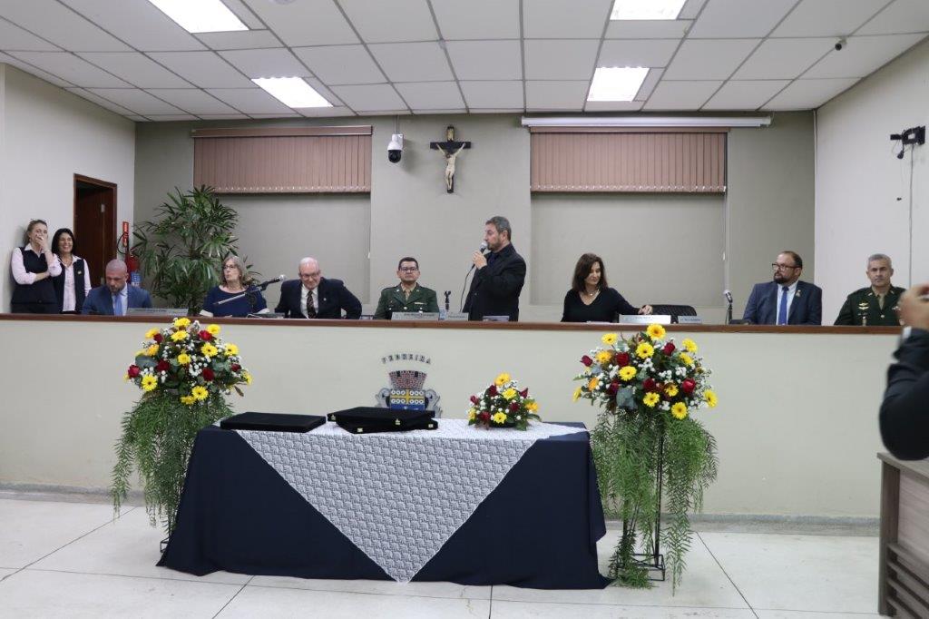 A Solenidade foi conduzida pelo Presidente João Rafael Cavenaghi, que fez a abertura da cerimônia agradecendo a presença de todos os convidados, especialmente dos homenageados e familiares. A Mesa Principal foi composta, além do Presidente da Casa, pelo 1º e 2º Secretários: Vereadores Leonardo Henrique Cirino e João Paulo Paulella; pela Vice-Prefeita Magda Bellix (representando o Prefeito Fábio Polidoro); pelos três homenageados e também pelo SubTenente – Chefe da Instrução do Tiro de Guerra 02-093 de Pedreira, Sr. Samoel Simão Bresolin.