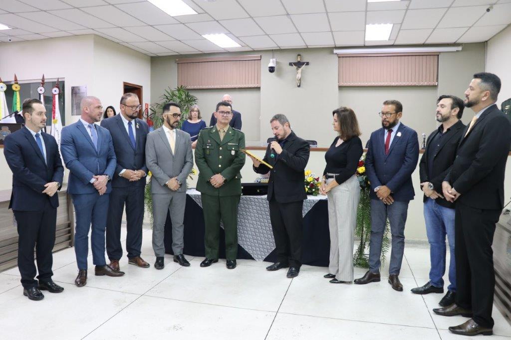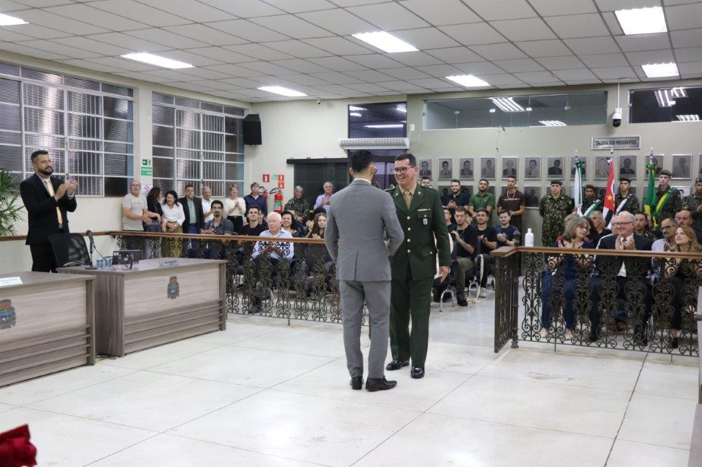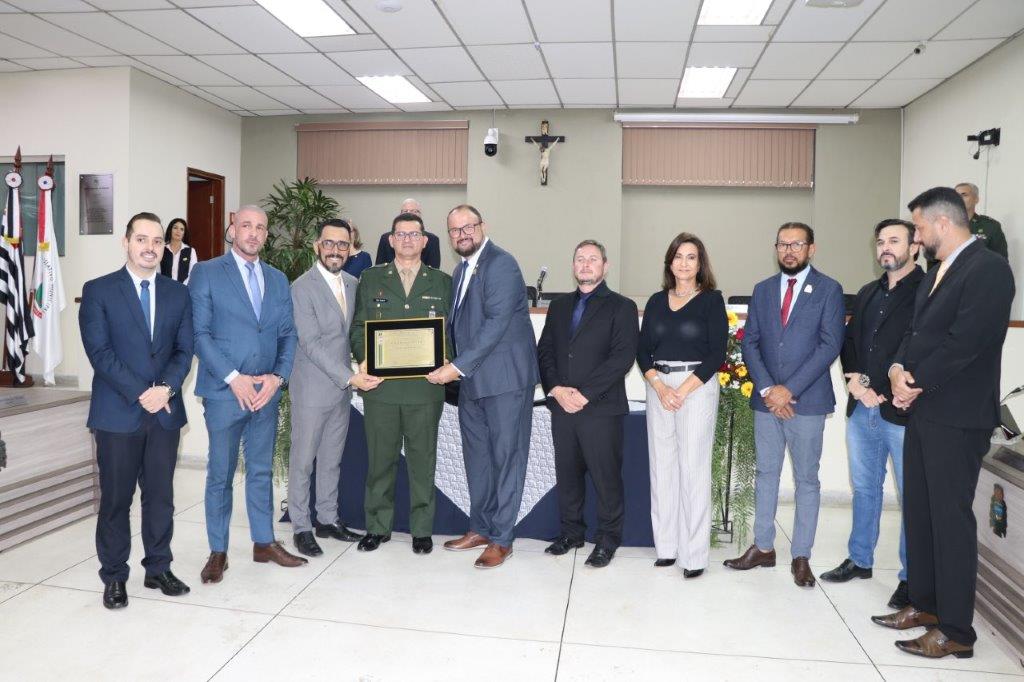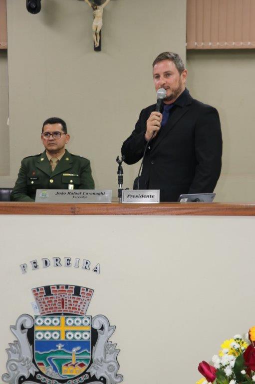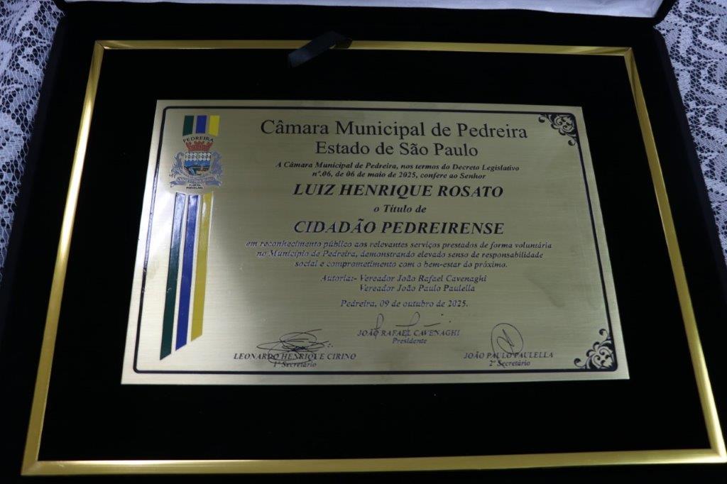 A Câmara Municipal de Pedreira realizou sua 5ª Sessão Solene do presente exercício, outorgando o Título de Cidadão Pedreirense aos Senhores: Luís Antonio Benites Ajala - 2º Tenente do Quadro Auxiliar de Oficiais, oriundo da QMS Infantaria e Luiz Henrique Rosato e o Título de Cidadã Pedreirense à Sra Maria Eliana Ganassim Rosato, ocorrida na última quinta-feira, 09 de outubro de 2025.