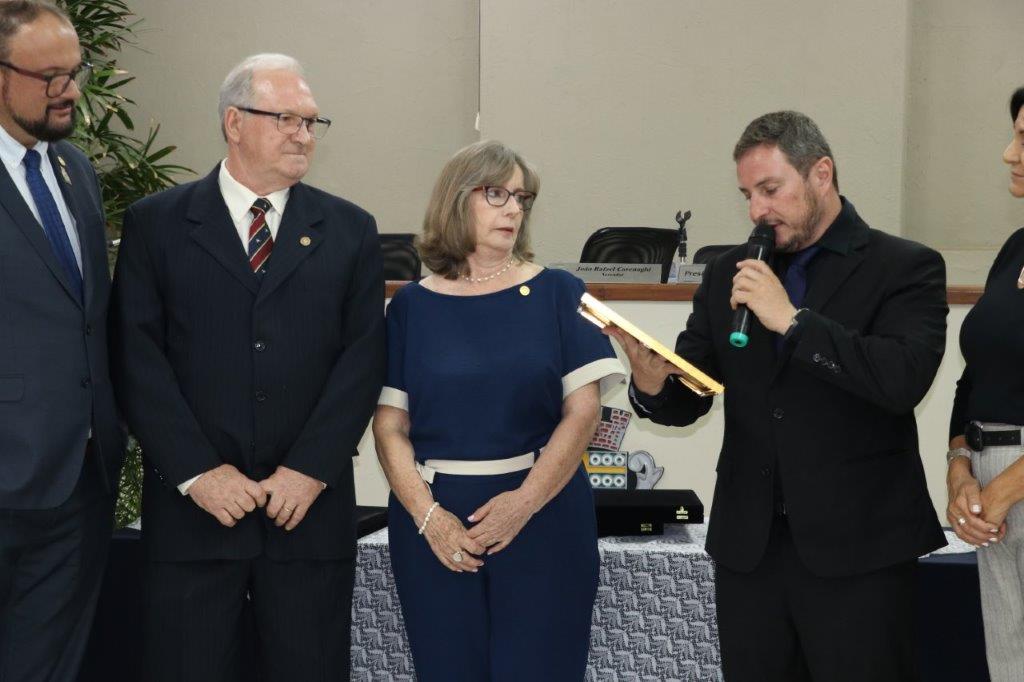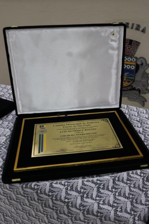 O Vereador e Presidente Rafinha Cavenaghi foi autor da honraria ao casal Rosato e Eliana e em suas palavras disse que aprendeu muito com o casal desde lá atrás quando foi voluntário do Lar dos Velhos. Enfatizou que o Rosato e a Eliana gostaram muito de Pedreira quando aqui chegaram e essa homenagem é nada mais justa por tudo que já fizeram pela nossa cidade e ainda o fazem, como rotarianos e como voluntários do Lar dos Velhos. O Presidente terminou dizendo que era muito gratificante entregar o Título ao casal.