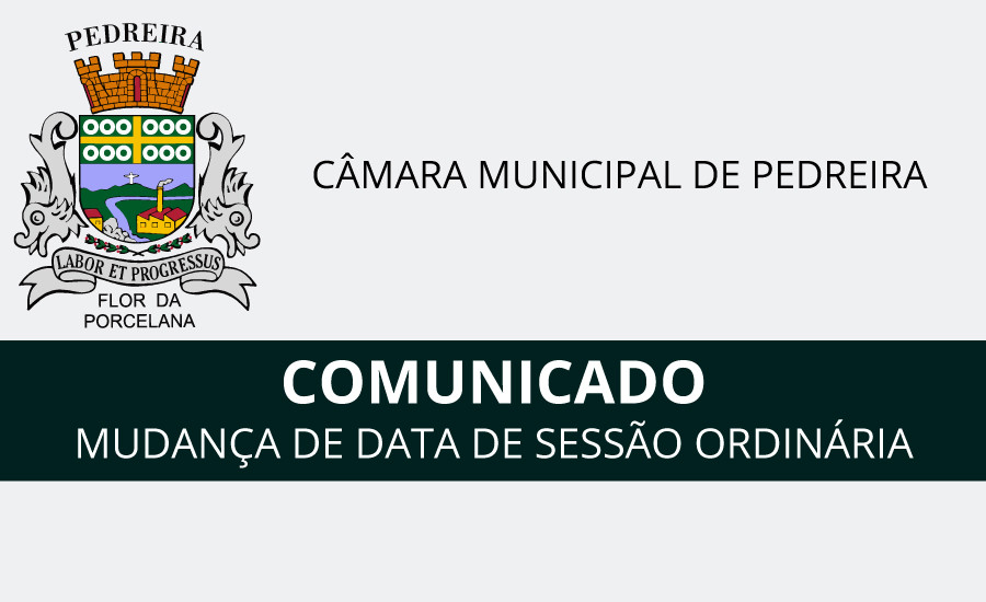 João Rafael Cavenaghi, na qualidade de Presidente da Câmara Municipal de Pedreira, informa que, em caráter excepcional, a 2ª Sessão Legislativa Ordinária do dia 16 de fevereiro de 2026, foi redesignada para o dia 23 de Fevereiro de 2026 (segunda-feira), às 18 horas.