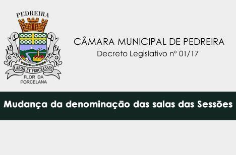 DECRETO LEGISLATIVO Nº. 01/2017 - DENOMINA A “SALA DAS SESSÕES DA CÂMARA MUNICIPAL DE PEDREIRA”