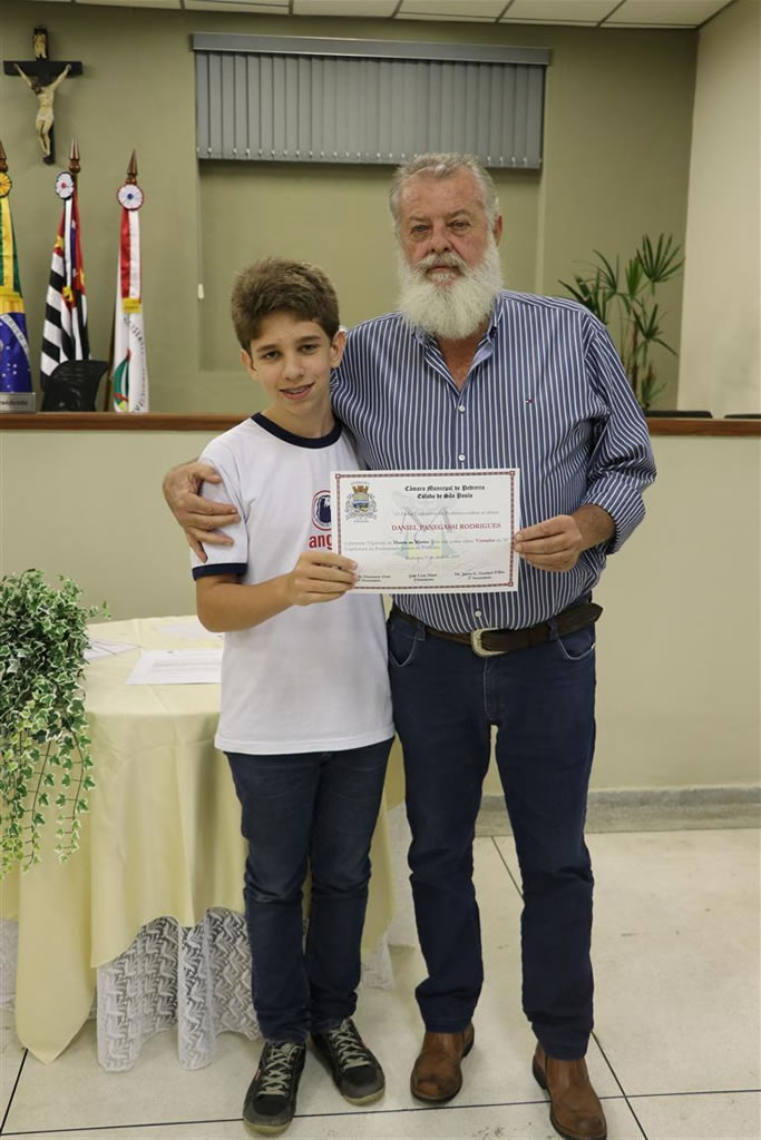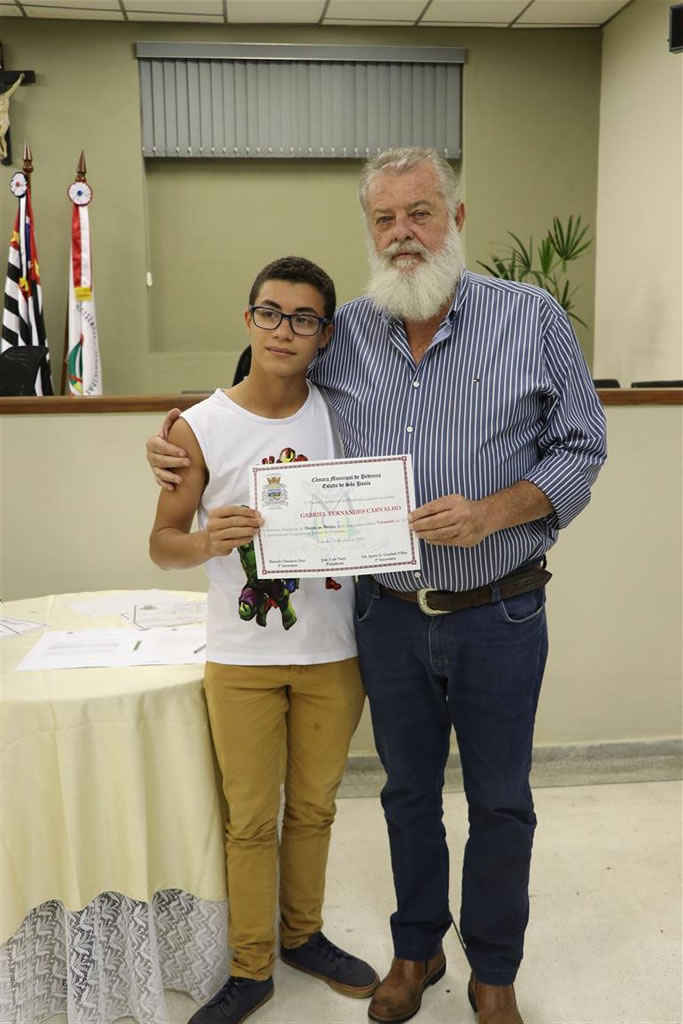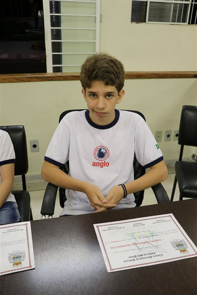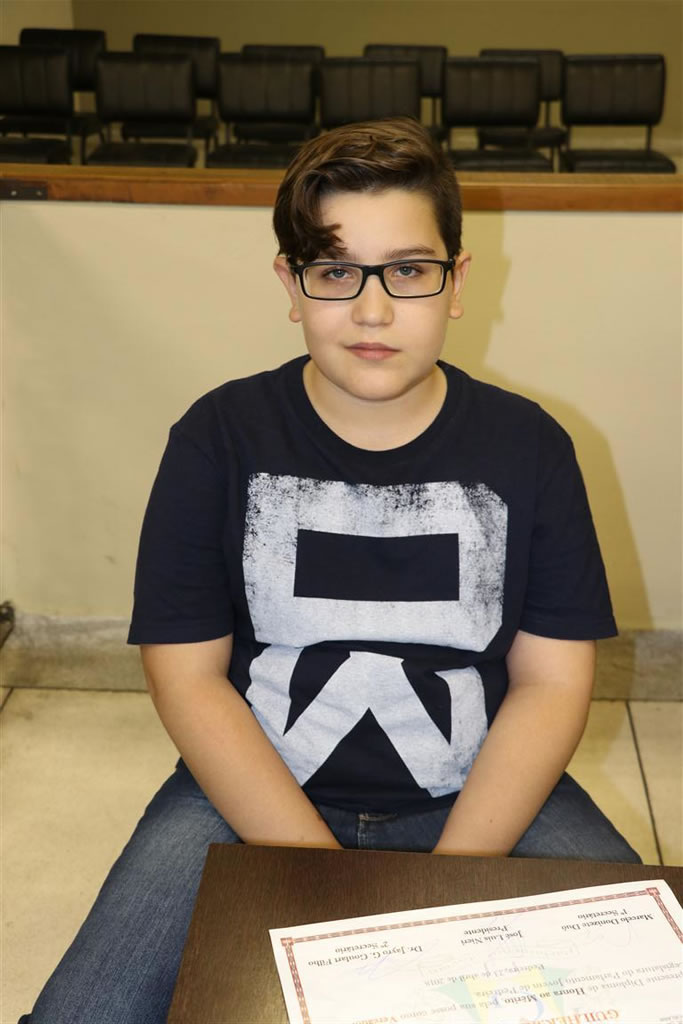 Presidente: GABRIEL FERNANDES CARVALHO - aluno da EE "Luiz Bortoletto"