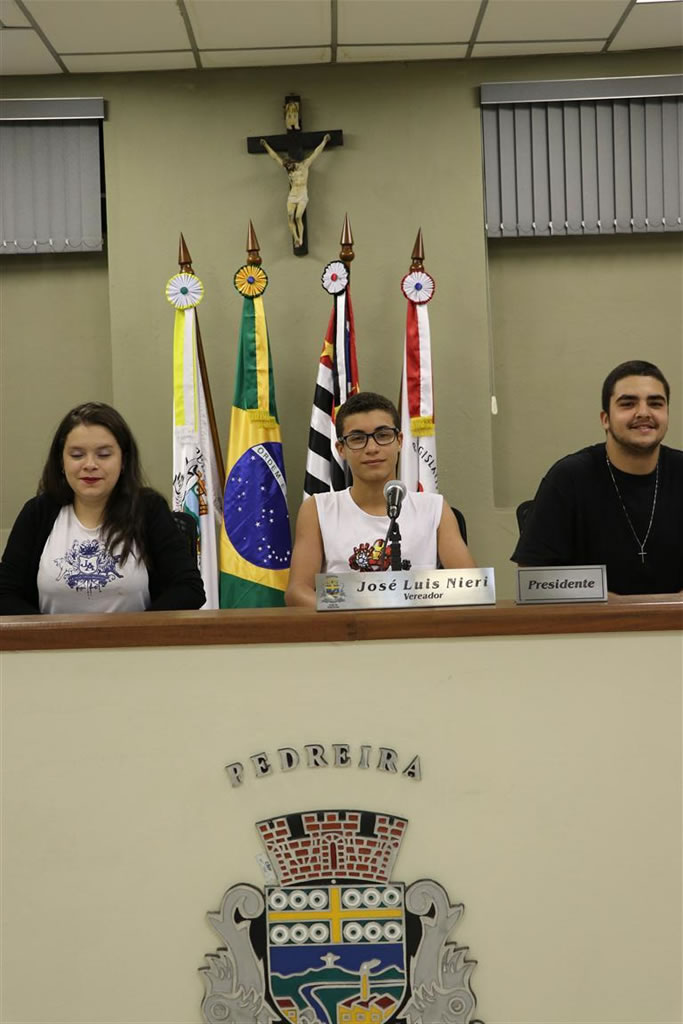 Dia 23 de abril, ocorreu a primeira Sessão do Parlamento Jovem, onde foi firmada a posse dos 09 Vereadores Jovens que ingressaram na 16ª Legislatura, além dos 09 Suplentes. O Vice-Presidente da Câmara Municipal de Pedreira, Sr.Antonio Ganzarolli Filho, que esteve representando o Presidente José Luis Nieri, conduziu os procedimentos de praxe na efetivação da Posse dos Vereadores Jovens, oportunidade que foram entregues Diplomas de Honra ao Mérito pela brilhante participação nesta nova Legislatura do Parlamento Jovem Pedreirense, assim como aos suplentes. As Escolas Estaduais e Particulares de nosso Município também foram agraciadas com um Diploma, em agradecimento ao apoio e participação no Projeto. O Vereador Mário Wilson Fratta(Nino Fratta) também esteve presente para prestigiar o ingresso dos alunos no Parlamento Jovem de Pedreira. Após a posse dos eleitos, foi realizada a 1ª Sessão Extraordinária para eleger a Mesa Diretora do Parlamento Jovem. A eleição foi feita entre os nove vereadores empossados, e ficou assim constituída:
